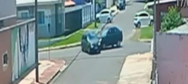 Câmeras de segurança flagram colisão entre dois veículos em Uvaranas
