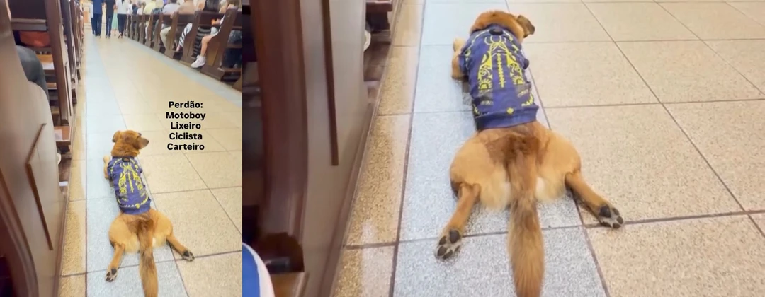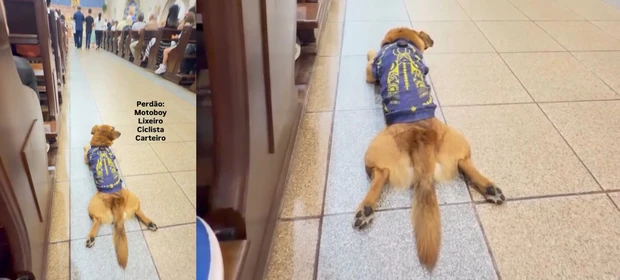 Cão caramelo rouba a cena e ‘reza’ durante missa em PG