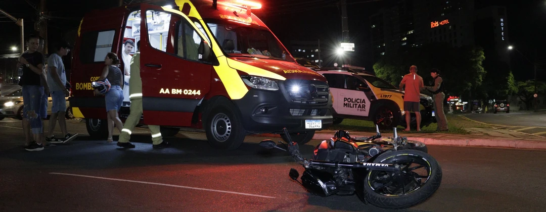 Colisão entre carro e moto trava cruzamento no centro de PG