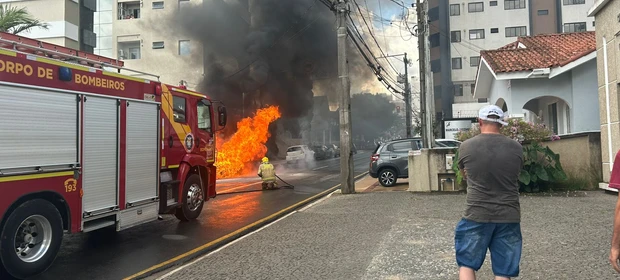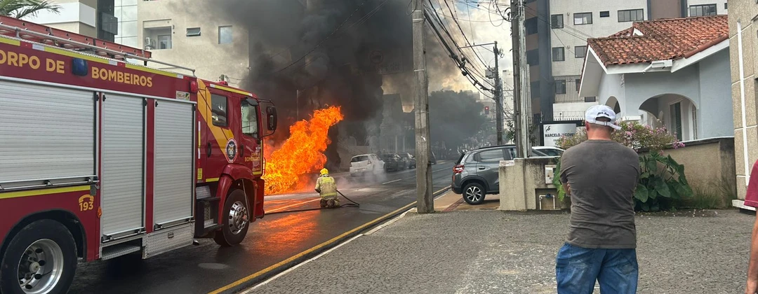 VÍDEO: Motorista tentou apagar chamas de veículo com extintor antes de ser destruído