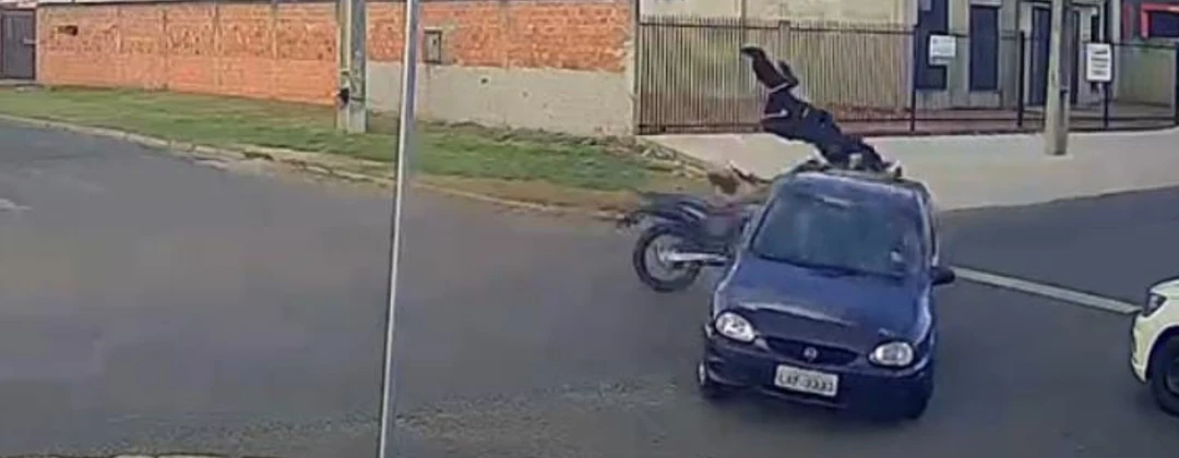 VÍDEO: Câmera flagra acidente entre carro e moto em PG; uma pessoa ficou ferida