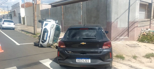 Veículo capota após batida em cruzamento da Rua Visconde de Sinimbú, no Nova Rússia