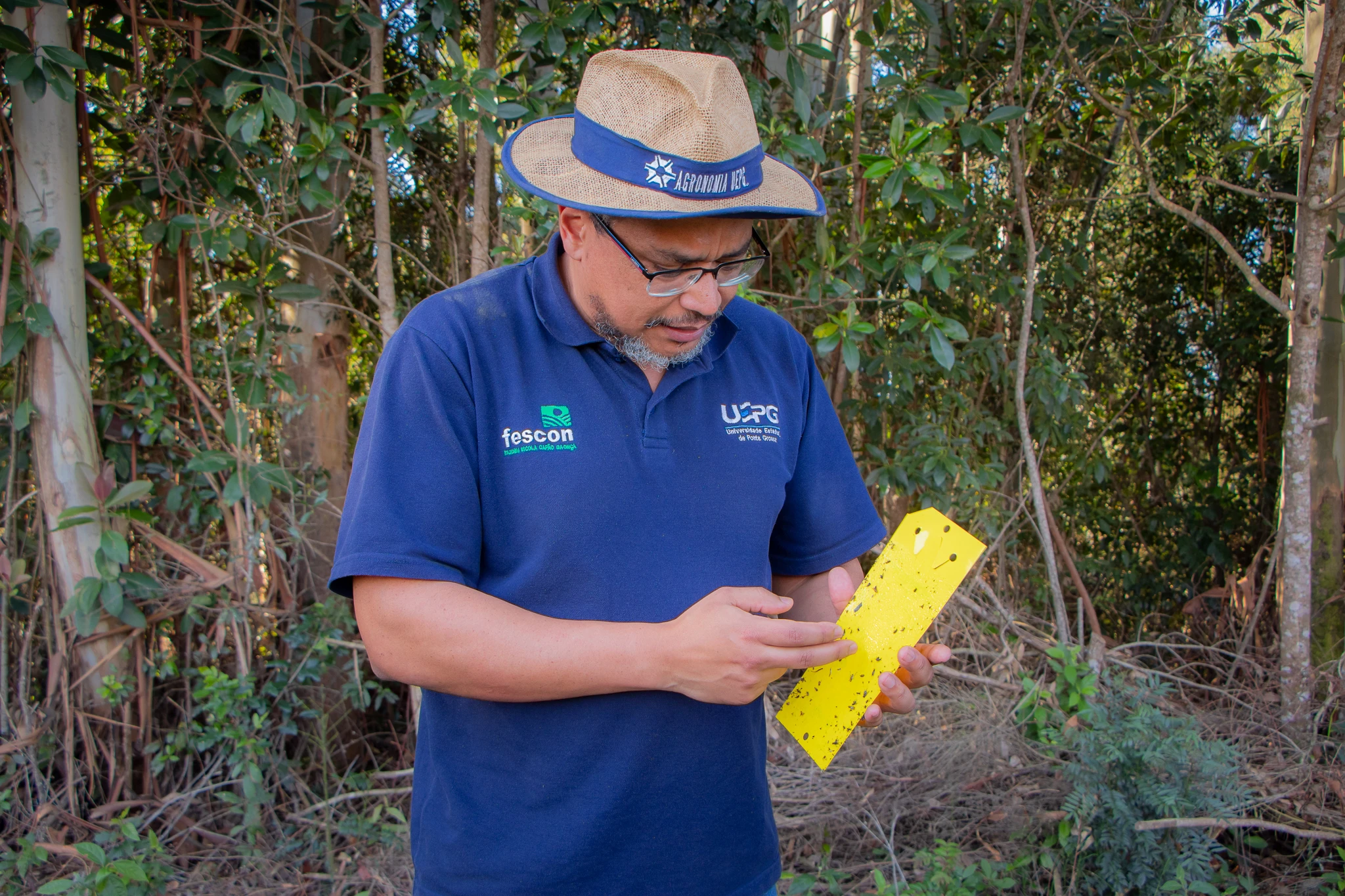 A fim de amenizar a principal dor de cabeça do produtor de milho, a cigarrinha-do-milho (Dalbulus maidis), a Fazenda Escola Capão da Onça, da Universidade Estadual de Ponta Grossa (Fescon-UEPG), tem efetuado trabalhos de manejo dessa praga a partir da aplicação de agentes biológicos, com vistas à redução do impacto ambiental. A pesquisa é o carro-chefe do Laboratório de Entomologia, comandado pelo professor Orcial Ceolin Bortolotto, diretor administrativo da Fescon-UEPG. As atividades integram um projeto em rede que envolve, além da UEPG, a UEL, a UENP, a Unicentro, a UTFPR, a UniCesumar, a Embrapa Milho e Sorgo, a Embrapa Cerrados, as cooperativas Coamo, Cocamar, Copacol e Integrada, e, ainda, o IDR-Paraná e a Agência de Defesa Agropecuária do Paraná. O inseto é o agente transmissor do vírus da risca e das bactérias fitoplasma e espiroplasma, conhecidas como “molicutes”. Por isso, os técnicos denominam a doença como “complexo do enfezamento”. A Fundação Araucária e o Serviço Nacional de Aprendizagem Rural devem aplicar quase R$ 4 milhões ao projeto, que será desenvolvido durante três anos. Segundo Bortolotto, boa parte desse valor será direcionado à UEPG ao longo do convênio de 38 meses, justamente por ser onde ocorrem pesquisas de monitoramento de pragas em nível estadual, em todas as regiões produtoras de milho, dos insetos infectados pelo patógeno do enfezamento, além de ser o local onde são desenvolvidas estratégias de manejo da praga. “Já fizemos, por três safras, atividades com o uso de drones agrícolas para o manejo da cigarrinha do milho, demonstrando a eficiência e a boa performance dessas ferramentas”, relata. A pesquisa faz parte da linha de manejo fitossanitário, que estuda o manejo de pragas, doenças e plantas daninhas. “No manejo de pragas, tem sido bastante crescente o desenvolvimento de atividades com biológicos, principalmente sugadores”, explica. Na cultura da soja, esses biológicos são usados para o controle de percevejos e tripes, e, na do milho, da cigarrinha-do-milho. Interação Os pesquisadores também realizam estudos com fungos, a fim de promover a morte dos insetos. “O interessante é que hoje verificamos que, em especial para essa praga, a mistura do produto biológico com o produto químico acaba dando efeito sinérgico de eficiência em algumas moléculas – claro, não em todas”, atesta o professor do curso de Agronomia, que desenvolve a linha de pesquisa de manejo integrado de pragas de grandes culturas. Bortolotto relata que, inicialmente, duvidava-se da eficácia da interação entre agentes biológicos e químicos no manejo de pragas, mas o resultado foi surpreendente. “Temos observado no campo que a mistura do biológico com o químico, hoje, é fundamental e essencial para o manejo da cigarrinha-do-milho. Isso graças a atividades desenvolvidas aqui dentro da UEPG. Já tive oportunidade de estar no Paraguai e em diversos estados do Brasil para levar aos produtores essas informações”, destaca. Drones O uso de drones, “uma tecnologia que veio para ficar na agricultura”, também contribui para reduzir o impacto ambiental. “Um drone joga um volume de produto muito inferior do que uma aplicação por trator ou mesmo uma aplicação por avião”, salienta. Na Fescon-UEPG, os aparelhos têm sido aplicados no manejo de plantas daninhas, como a buva, e no manejo de pragas. “Já fizemos alguns estudos, como o manejo da cigarrinha-do-milho e de percevejos em soja, demonstrando que a aplicação aérea via drone também é bastante interessante, pertinente e viável ao uso do produtor, tendo aí uma expansão dessas observações feitas aqui na universidade para distintas regiões produtoras do Brasil”, acrescenta Bortolotto. Outras pesquisas Entre outras contribuições relevantes da Fescon-UEPG para a agricultura nacional, o diretor administrativo da instituição destaca um projeto via Fundação Araucária, em rede com outras instituições estaduais, que visa mensurar e quantificar as boas práticas de manejo de solo, que demonstram a importância da presença de palhada, de curvas de nível e de plantas de cobertura, que auxiliam na proteção do solo e reduzem a perda de nutrientes e de fração do solo por erosão, decorrentes de solo desprotegido ou onde há manejo inapropriado. “Chamamos de manejo inapropriado justamente aquilo que se caracteriza, hoje, como um revolvimento intensivo do solo, que acaba prejudicando a consolidação do sistema Plantio Direto dentro da esfera nacional”, explica. A adoção de bioinoculantes – bactérias que favorecem o crescimento das plantas – também é objeto de estudo. “Em muitos casos, o uso dessas bactérias pode representar, inclusive, a redução do uso de nutrientes ou de adubo sintético, em especial, o nitrogênio”, destaca Bortolotto. Nessa área, os trabalhos mais consolidados envolvem a adoção das bactérias Bradyrhizobium e Azospirillum no cultivo da soja, mas também já existem trabalhos similares na cultura do milho e trigo. “Há vários trabalhos aqui, por exemplo, comparando a performance desses inoculantes em diferentes cultivares e em diferentes épocas de cultivo. O uso desses inoculantes como potenciais indutores de resistência, ou seja, que tornam a planta mais resiliente no meio ambiente, pode vir a reduzir a questão da ocorrência de doenças e pragas”, acrescenta. O uso de inoculantes biológicos é uma linha que tem crescido amplamente no país, cita o professor. “O investimento desses inoculantes não é caro, e o retorno que eles proporcionam é bastante expressivo em termos de performance da planta que é desenvolvida e também em produtividade”, detalha. Na fitopatologia – manejo de doenças –, a Fescon-UEPG desenvolveu diversos trabalhos em rede, em diferentes regiões do Brasil, para avaliar a performance de fungicidas em diferentes cultivares de soja, a fim de dar recomendaç