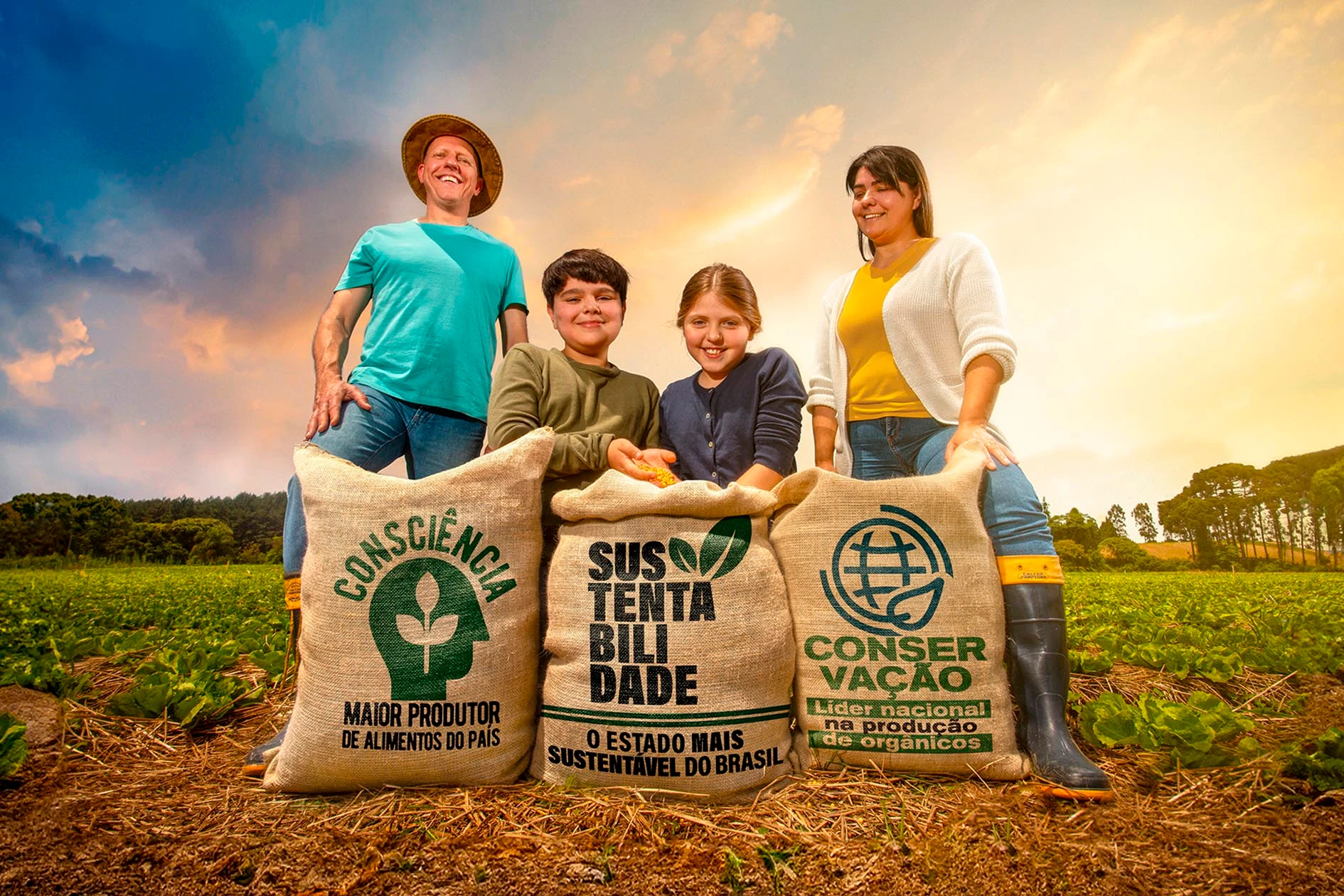 A campanha destaca que estas ações são conciliáveis com uma produção agrícola robusta. Ao mesmo tempo que se destaca na conservação dos biomas, de nascentes e do solo, o Paraná é o líder nacional na produção de alimentos, comercializando mais de 350 produtos diferentes.