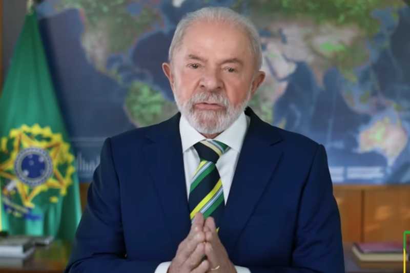 Surge, então, o Presidente Lula, provavelmente em seu gabinete no Palácio do Planalto. Veste um terno azul – mais para claro que para o marinho – muito bem cortado, uma camisa branca com a gola na medida justa ao seu pescoço e uma gravata em azul, verde, branco e amarelo, com o nó perfeito.