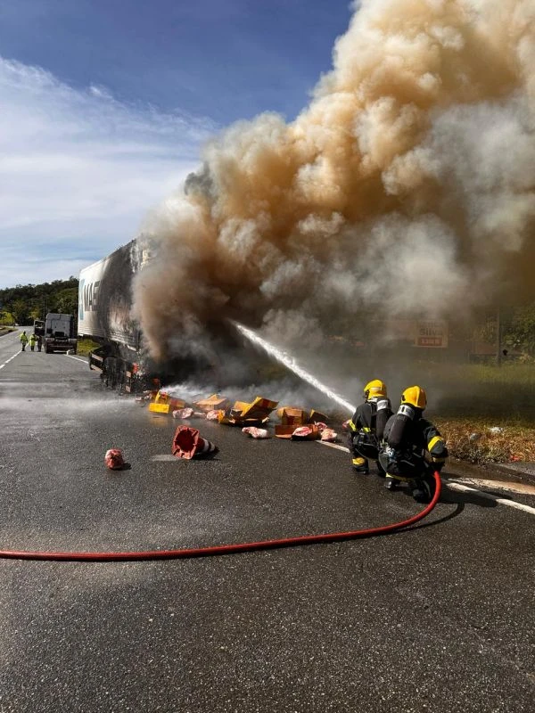 Conforme os bombeiros, o superaquecimento das ferragens teria sido que ocasionou o incêndio, que se concentrou na carroceria e nos rodados. Cerca de 2,5 mil litros de água foram necessários para conter as chamas. O rescaldo consumiu outros 1 mil litros. A fumaça podia ser vista a distância na BR-101.
