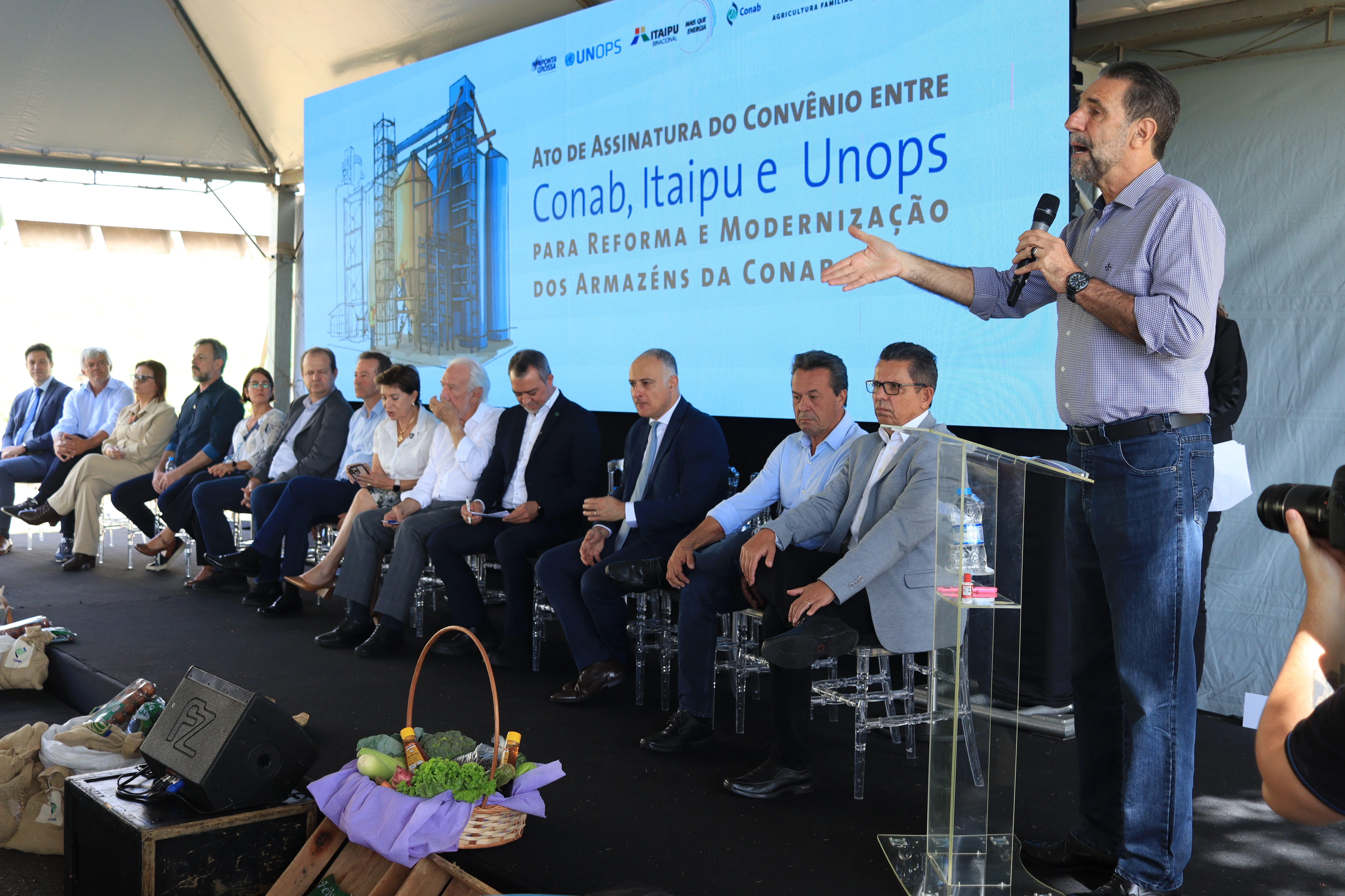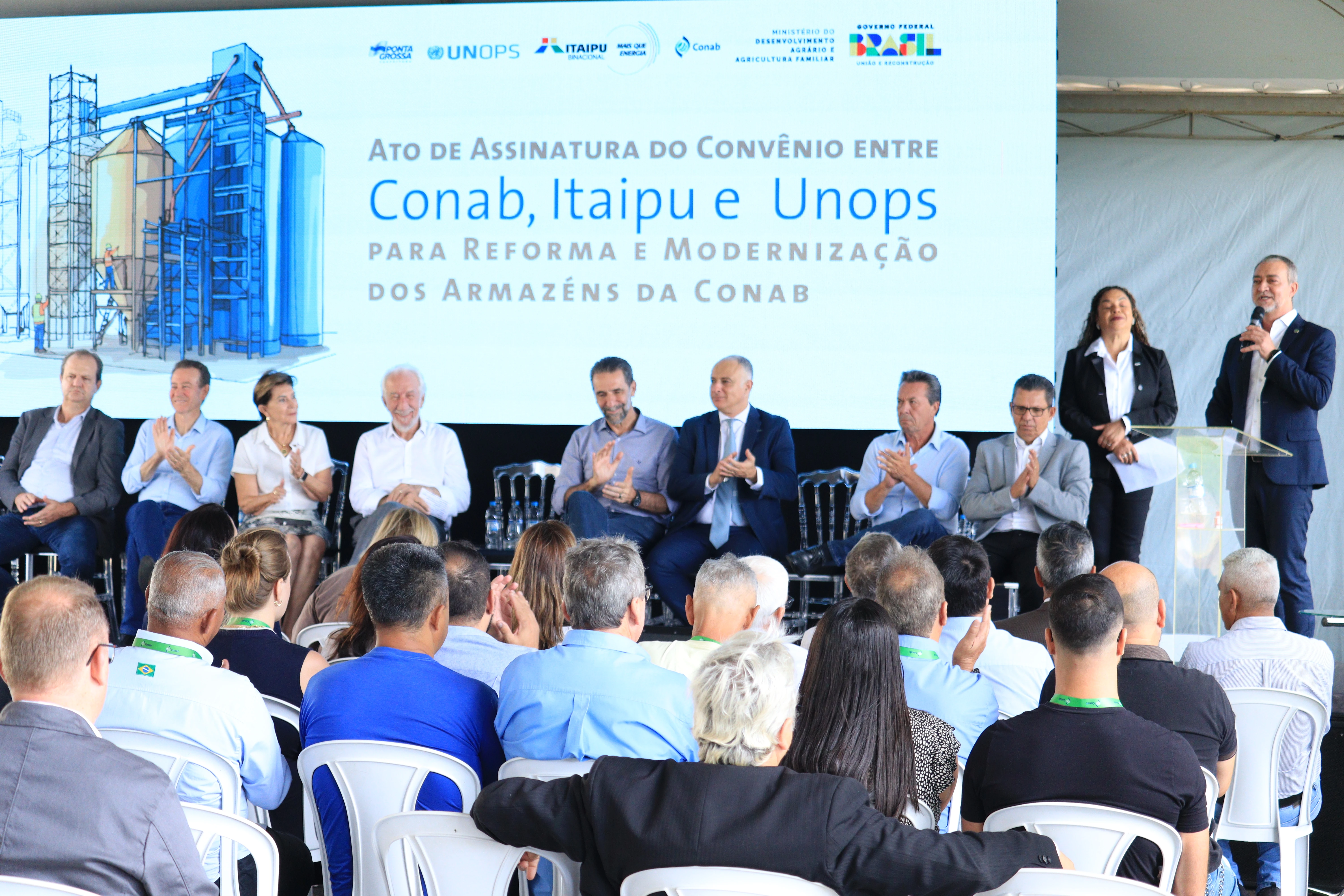 A reforma e a modernização dos armazéns da Companhia Nacional de Abastecimento (Conab) vão ajudar a reduzir o preço dos alimentos do País. Essa é a expectativa de dirigentes da Itaipu Binacional que vai investir R$ 55.478.230,00 para melhorar a estocagem dos alimentos em quatro unidades armazenadoras. O convênio foi assinado nesta quarta-feira (26) entre Itaipu, Conab e o Escritório das Nações Unidas de Serviços para Projetos (Unops), em uma solenidade em Ponta Grossa (PR).
