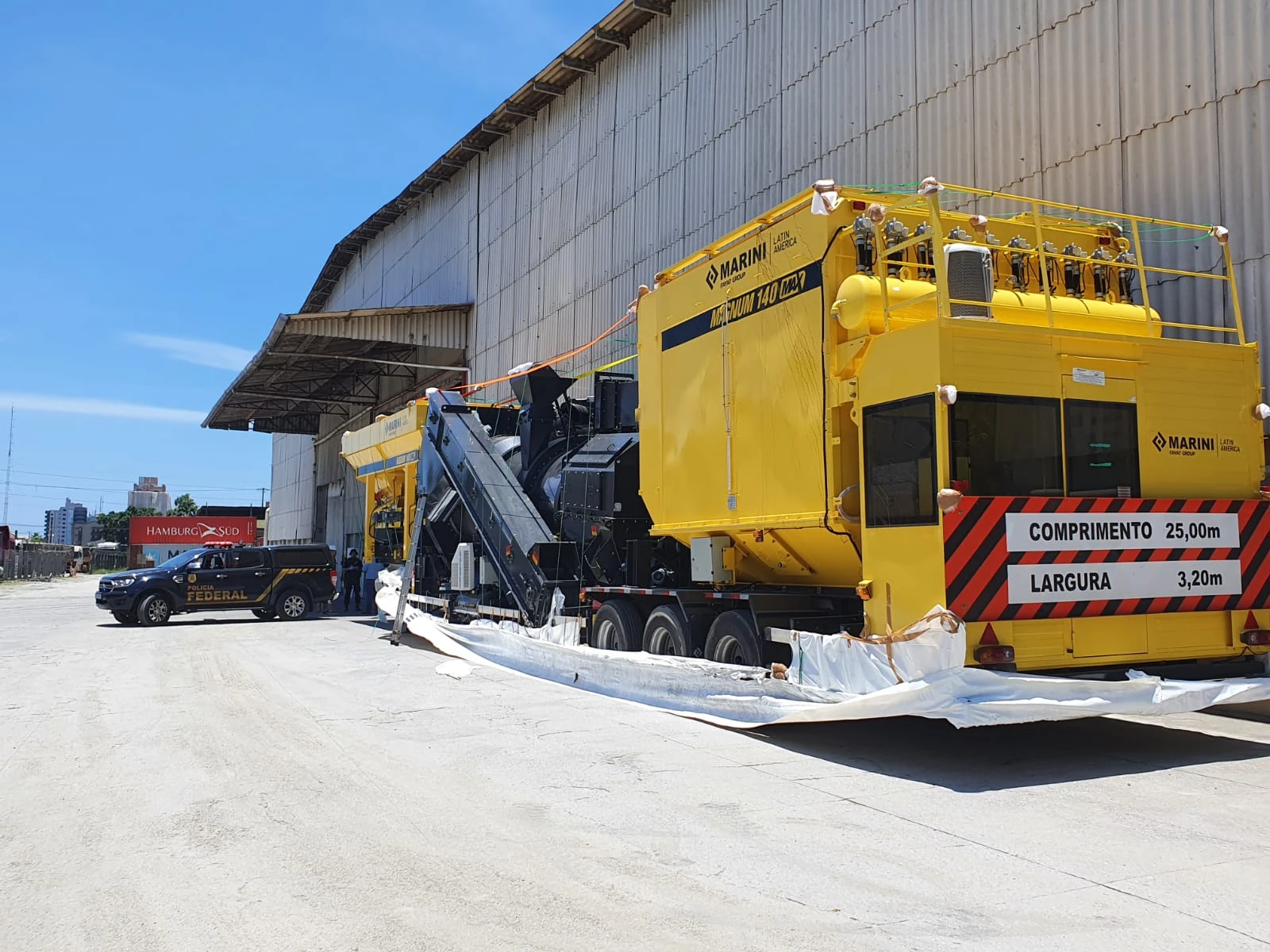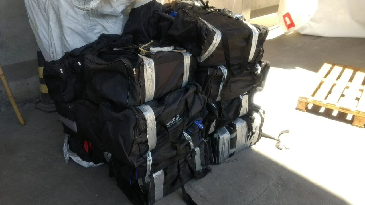 A droga, que estava acondicionada em tabletes agrupados em cerca de 22 bolsas, teria sido colocada clandestinamente por criminosos numa usina móvel de asfalto, que estava no pátio da empresa, e teria como destino a Argélia.