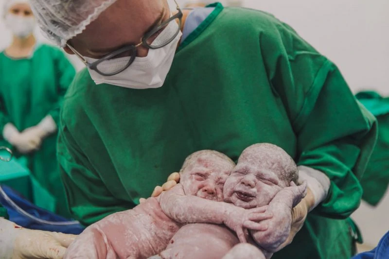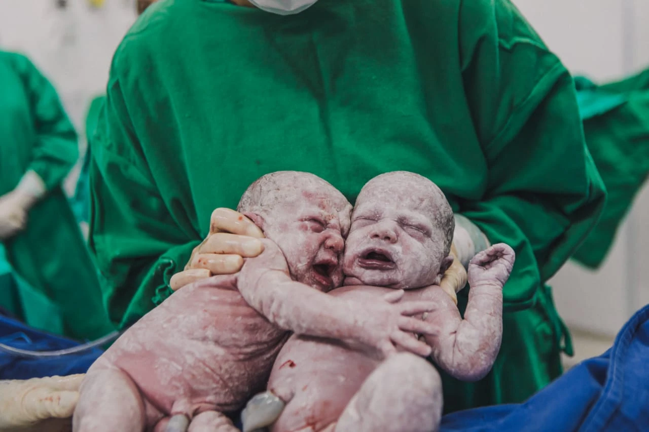 O momento emocionante foi eternizado pela fotógrafa Bruna Costa, especializada em partos. “Vai ser tão especial quando elas verem esse momento, no futuro”, comentou.