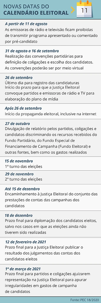 Apenas a data da posse dos eleitos permanece a mesma (1º de janeiro de 2021).