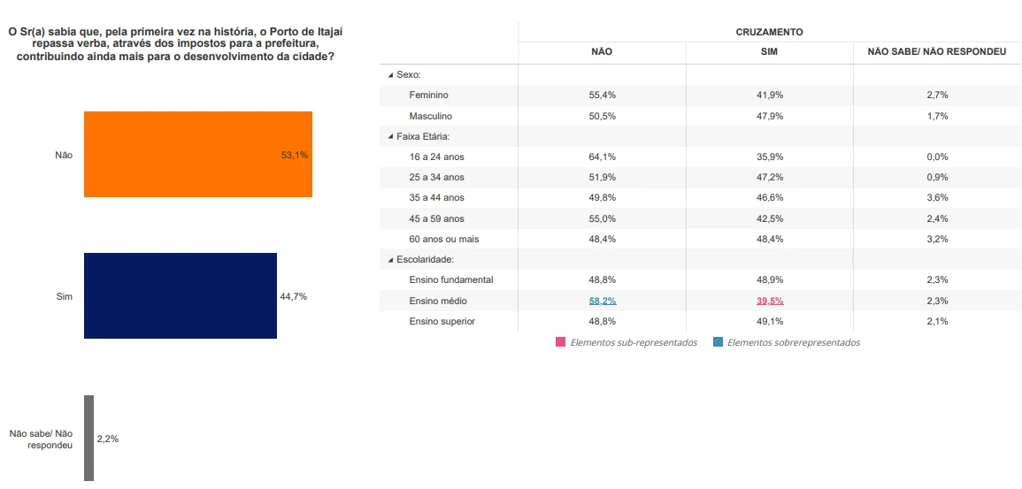 A pesquisa contratada pelo Grupo D'Ponta Mídias e Consultoria, foi realizada pelo IRG Pesquisas entre os dias 16 e 23 de junho, em Itajaí (SC), com o objetivo de mapear a opinião pública sobre a nova administração portuária. O município foi dividido em 11 regiões para a coleta dos dados, que envolveram mais de 500 entrevistados com idade acima de 16 anos. O levantamento apresenta margem de erro de 5% e nível de confiança de 95%.