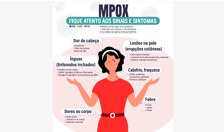 Seu sintoma mais comum é a erupção na pele, semelhante a bolhas ou feridas, que pode durar de duas a quatro semanas. O alerta vigente para mpox está relacionado à nova cepa 1b do vírus que está circulando na África foi identificada no Brasil em março.
