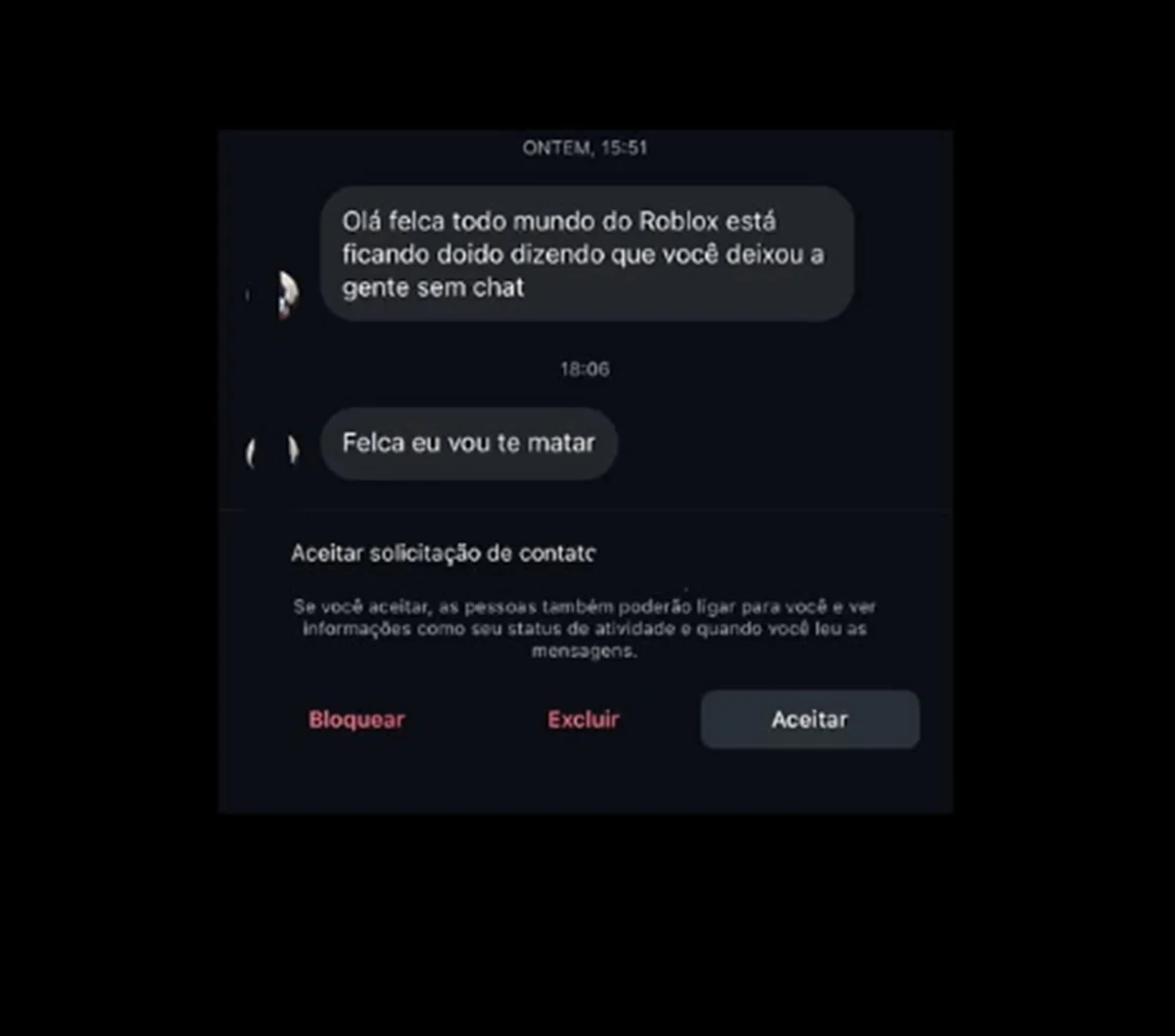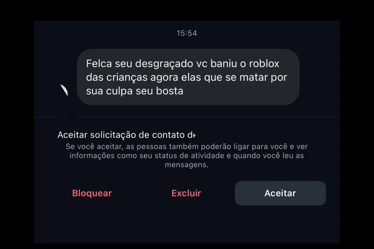 Com a repercussão, Felca passou a ser alvo de ameaças nas redes sociais, sendo responsabilizado por crianças pelas mudanças no Roblox, ainda que de forma indireta. O influenciador Felipe Bressanim, conhecido como Felca, divulgou prints de mensagens agressivas recebidas no Instagram, incluindo ameaças de morte, em publicações feitas nos Stories na madrugada desta quinta-feira (15).