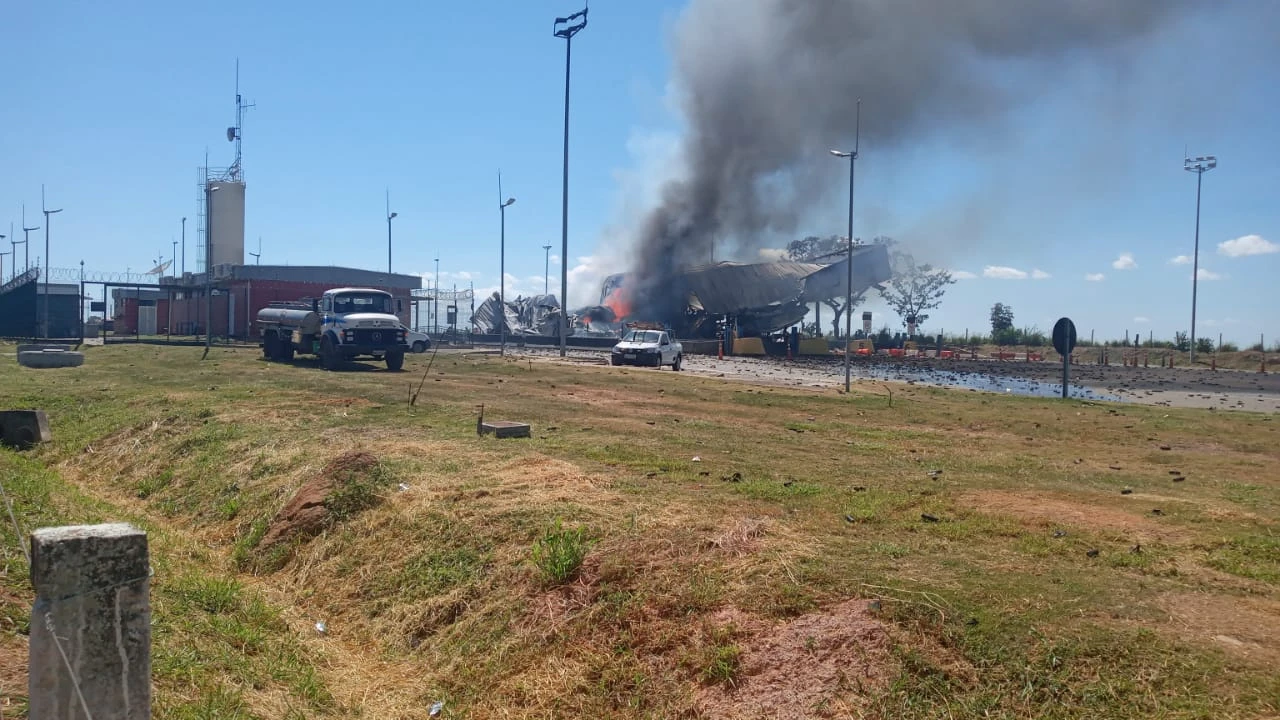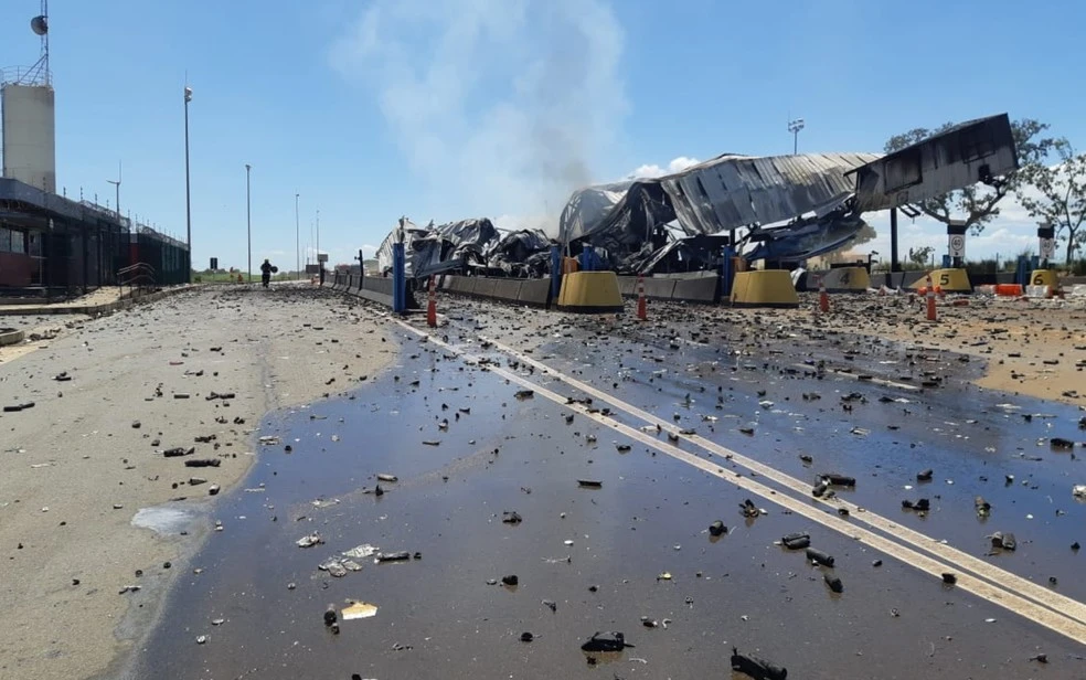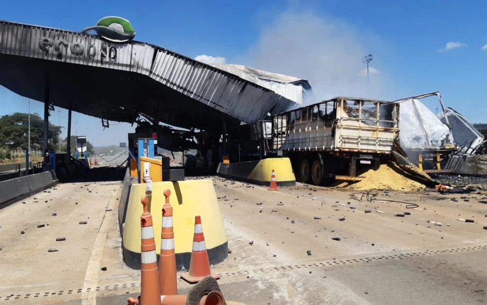 Essas colisões, conforme a PRF, provocaram um incêndio que atingiu a praça de pedágio e um caminhão graneleiro, que estava parado no local, mas o motorista conseguiu desembarcar antes que o incêndio atingisse a cabine e saiu ileso.