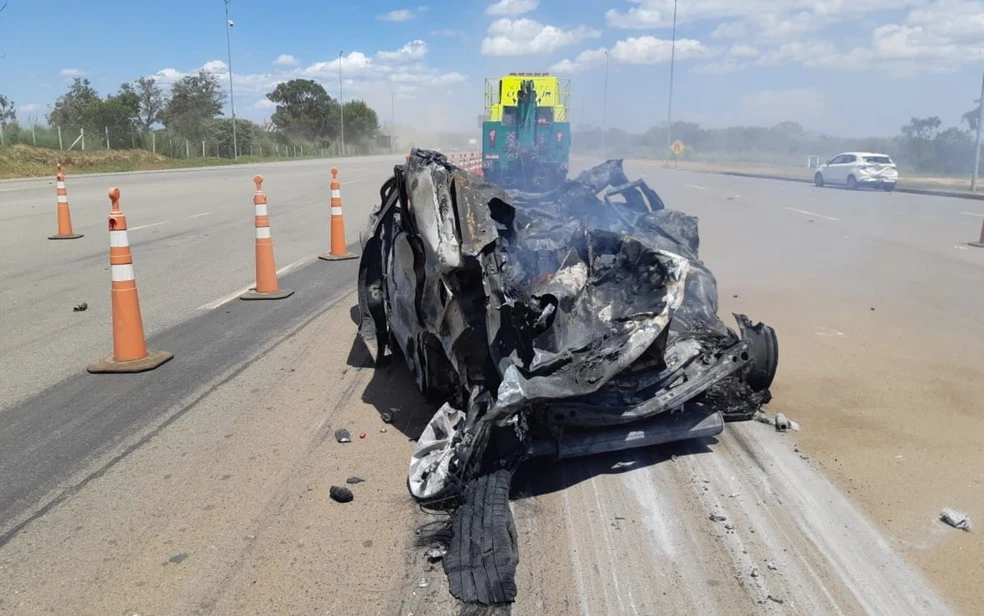 Imagens feitas pela corporação mostram que o local ficou completamente destruído. Segundo a PRF, os dois sentidos da rodovia estão interditados na altura do km 226. Um desvio foi feito pelos policiais em uma estrada de terra para os motoristas que seguem sentido Cristalina a Campo Alegre de Goiás.