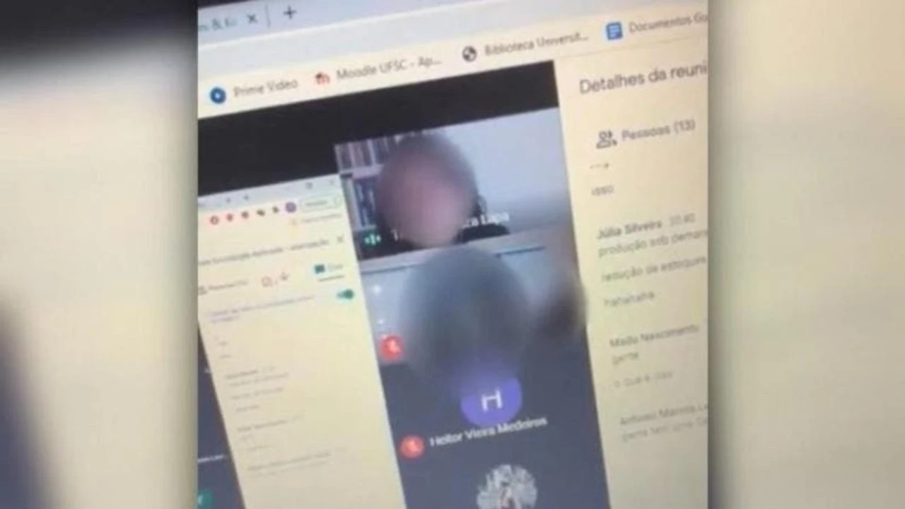 Constrangida, a professora que ministrava a aula adverte o aluno. “Não sei o que eu faço numa situação dessas. A única câmera ligada eu acho que é a câmera que não deveria estar ligada. É constrangedor, evidentemente. A gente está gravando, inclusive”, afirmou.