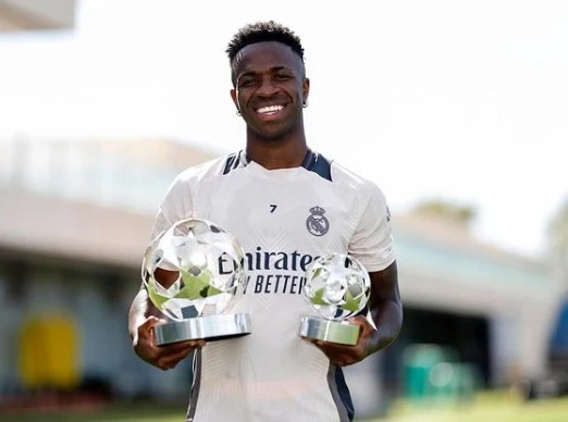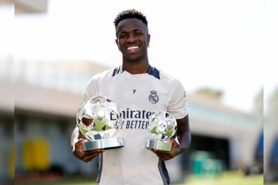 “O trabalho e a personalidade levam você a lugares altos. Obrigado a todos os meus companheiros por isso. Amo vocês”, declarou o atacante. Vinícius jogou 10 partidas na competição pelo campeão Real Madrid, marcou seis gols e deu cinco assistências. O brasileiro fez o segundo gol do Real na vitória de 2 a 0 sobre o Borussia Dortmund (Alemanha) na final da competição, conquistando seu segundo troféu da Liga dos Campeões com o clube.Ver essa foto no Instagram