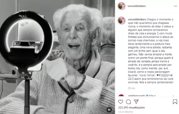 "Chegou o momento o qual não queríamos que chegasse nunca, o momento de dizer o adeus a alguém que sempre conhecemos cheio de vida e energia. É com muita tristeza que comunicamos o adeus ao sorriso mais charmoso, a voz mais doce cantarolante e a postura mais elegante. Uma nova estrela, radiante, com um brilho sem igual o céu ganhou. Não vamos encarar a morte como um ponto final, porque quem é amado de verdade jamais morre e você foi, é e sempre será amado por todos nós, como marido, pai, avô, bisavô, como o nosso personagem favorito: “Vovô TikTok”. É assim que lembraremos de você, sorrindo, feliz e sempre cantarolando!", dizia o comunicado que vinha acompanhado de um vídeo de Vô Nelson.