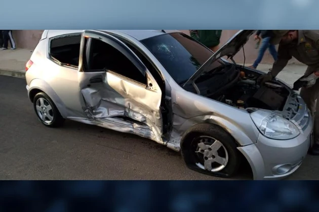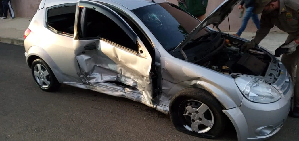 A colisão ocorreu entre um veículo Ford Ka e um Gol e, com o impacto, o Gol rodou na pista e atingiu uma placa de sinalização. Já o outro carro foi atingido no meio, parando no sentido contrário da pista, depois de estourar os pneus no meio-fio.