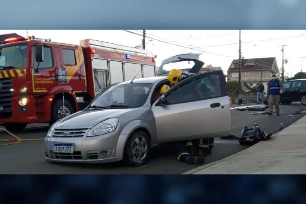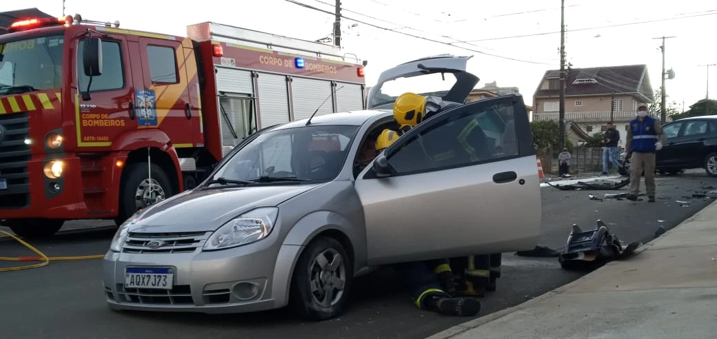Na tarde deste sábado (22), por volta das 18h, uma colisão entre dois carros deixou duas pessoas presas às ferragens em Ponta Grossa. O acidente aconteceu no cruzamento entre as ruas Evaristo da Veiga e Laurindo Rabelo, no Jardim Carvalho.