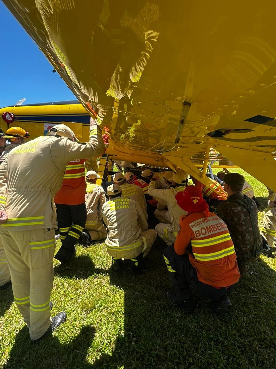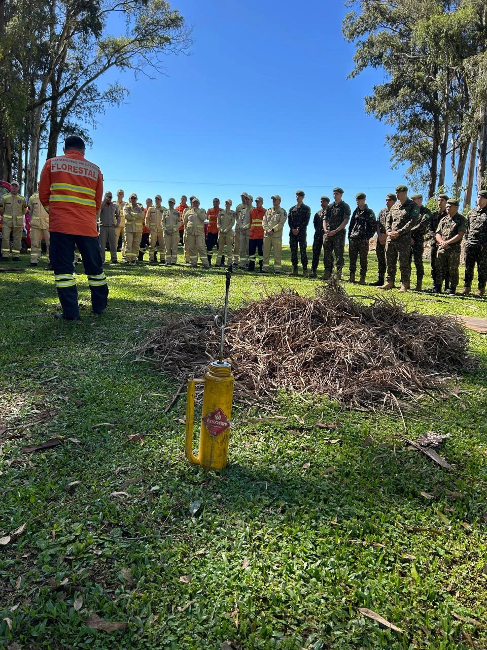 Integrantes do 5º Comando Regional de Bombeiro Militar (CRBM) e do Exército Brasileiro participaram de um treinamento para o uso de aeronaves no combate a incêndios florestais. A atividade aconteceu no dia 14 de outubro, em Palmeira, nos Campos Gerais do Paraná, e foi coordenada pelo coronel Carlos Alberto de Oliveira, comandante do 5º CRBM.