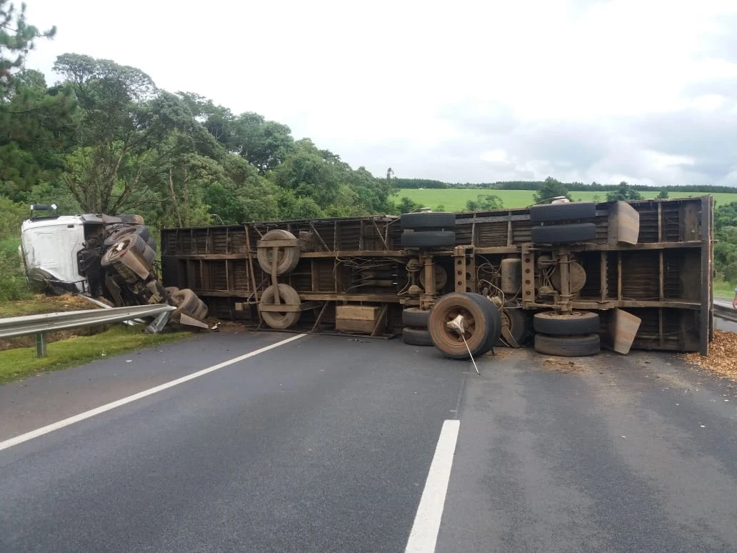 Conforme levantado pela equipe policial, o caminhão tombou ao realizar uma curva no sentido Ponta Grossa, bloqueando totalmente as faixas, derramando parte da carga. A pista ficou totalmente interditada das 16:40h às 18:40h. O trânsito passou a fluir em meia pista pela faixa da esquerda a partir das 18h40. O condutor de 37 anos, único ocupante do caminhão, foi socorrido e encaminhado para hospital em PG.