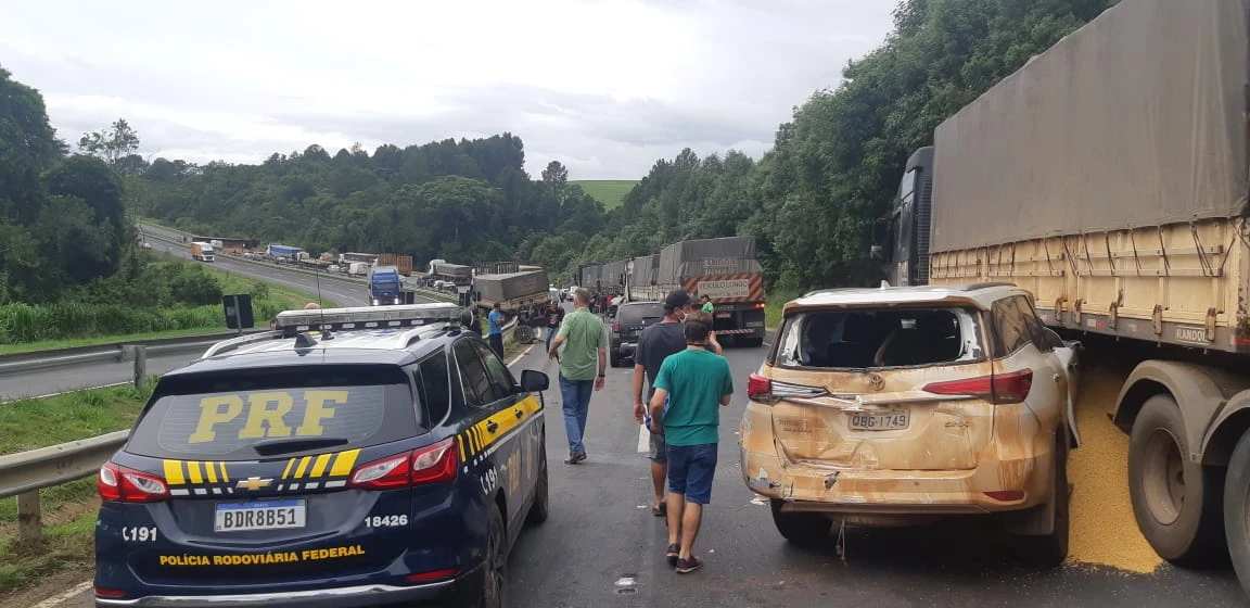 Em seguida, ocorreu um segundo acidente na fila, ocasionando um engavetamento envolvendo sete veículos. Uma Scania de Jardim Alegre/PR atingiu um Toyota/Hilux de Cuiabá/MT e sequencialmente, um VW Amarok de Cachoeirinha/RS, um Volvo FH 540 de Reserva/PR, um Fiat Ducato de Belo Horizonte/MG, um Volvo FH 540 de Aurora/SC e um Nissan Kicks de Belo Horizonte/MG.