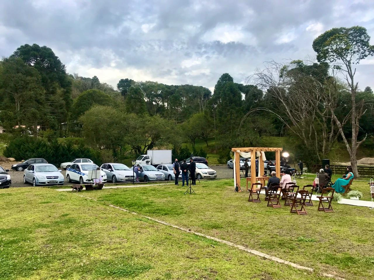Todas as medidas de segurança foram tomadas por conta do novo coronavírus. Apenas os familiares próximos estiveram no local, em cadeiras, aproximadamente 15 pessoas. Outros convidados permaneceram dentro do carro. Uma empresa de Ponta Grossa especializada em transmissão ao vivo e vídeos de casamentos foi contratada para levar a cerimônia aos amigos que não puderam participar presencialmente. Quem estava dentro dos carros também puderam assistir pelo celular.