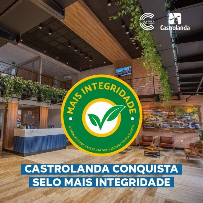 A Castrolanda conquistou durante o mês de dezembro o selo Mais Integridade, um reconhecimento do Ministério da Agricultura, Pecuária e Abastecimento (MAPA) para as melhores práticas e programas sobre o assunto entre as companhias do agronegócio. A cooperativa, para receber o reconhecimento, foi avaliada no âmbito da responsabilidade social, sustentabilidade, ética e práticas anticorrupção.
