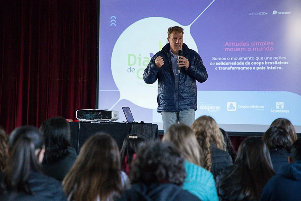 “A palavra cooperar significa união, juntar esforços, inteligência para vencer um obstáculo, remete justamente a nos tornarmos mais fortes para vencer alguma dificuldade. Com a participação dessas crianças e jovens aqui, estamos apresentando a eles, de maneira voluntária, ações de alguns setores da Cooperativa e aumentando um pouco mais o seu conhecimento”, relata o Presidente da Castrolanda, Willem Berend Bouwman.