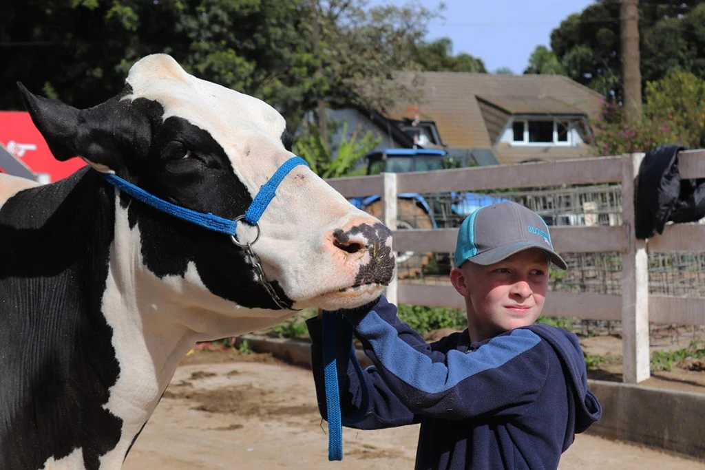 Guilherme Ortiz Machado, de nove anos, está participante do Clube pela primeira vez e conta sobre o que tem aprendido. “Aqui vejo meus amigos, faço mais amizades e aprendi sobre o leite, que tem que deixar a bezerra calma, que tem que pentear, dar banho nela. Já puxei a bezerra e estou gostando bastante”.