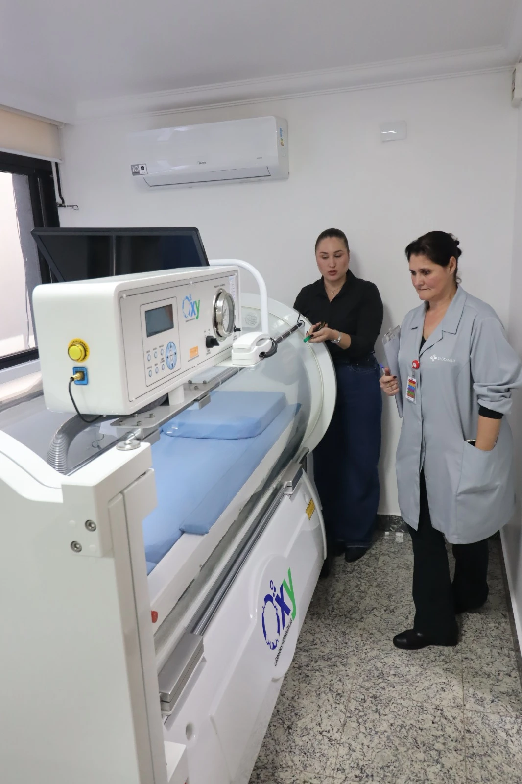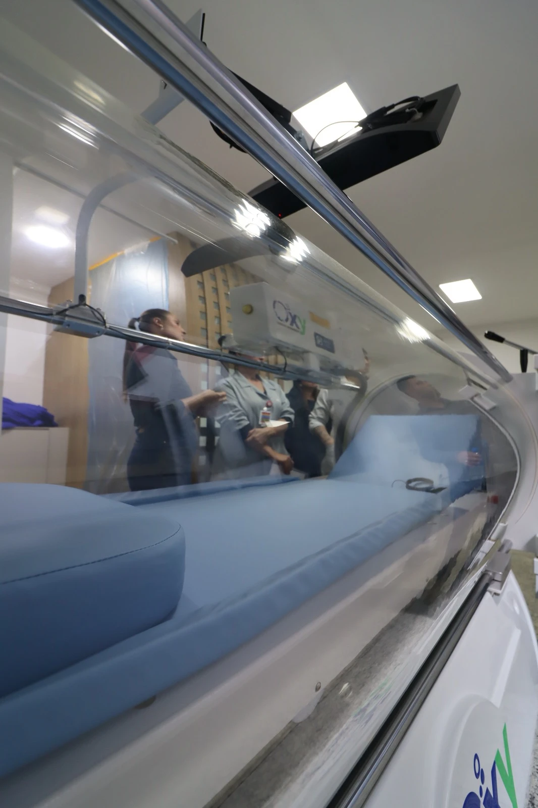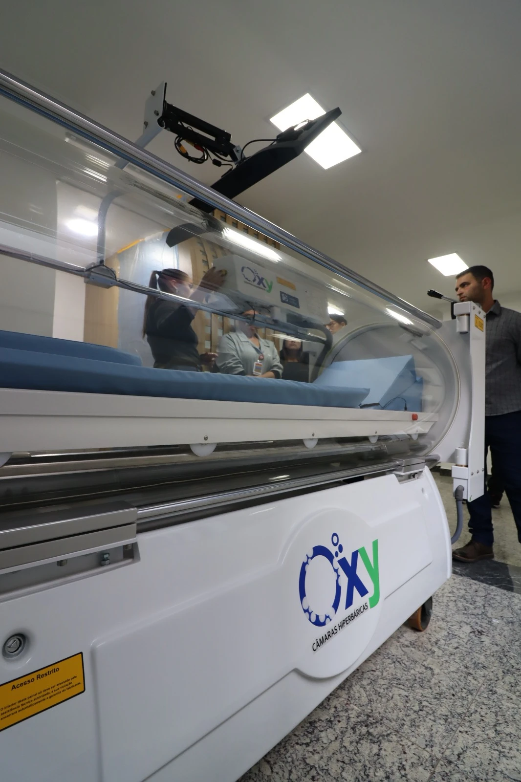 A partir desta semana, pacientes de Ponta Grossa e região não precisam mais se deslocar até Curitiba para realizar tratamentos com oxigenação hiperbárica. O Centro Hospitalar São Camilo é pioneiro nos Campos Gerais ao adquirir e colocar em funcionamento a primeira Câmara Hiperbárica da região. O novo equipamento representa um avanço importante no atendimento de diversas condições clínicas e já está em funcionamento no hospital. O médico radiologista do Centro Hospitalar São Camilo, Raphael Sanfelice (CRM 35819), participou do programa Manhã Total da Rádio Lagoa Dourada (98.5 FM) nesta quinta-feira (26) e explicou os benefícios da nova tecnologia. Ele destaca que a câmara é especialmente útil no tratamento de feridas complexas, comuns em pacientes diabéticos, por exemplo. “O sangue no diabético não chega de forma adequada na extremidade da ferida e não cicatriza. Com a câmara, a oxigenação no tecido melhora muito, cerca de até 20% a mais”, explica. A câmara hiperbárica é um equipamento fechado, geralmente cilíndrico, que pode ser pressurizado com oxigênio puro. Durante o tratamento, o paciente permanece dentro do equipamento respirando oxigênio em uma pressão maior que a atmosférica. Isso permite que uma quantidade superior de oxigênio seja dissolvida no sangue, promovendo benefícios terapêuticos para diferentes condições médicas. Entre as indicações estão feridas que não cicatrizam, queimaduras, infecções causadas por bactérias anaeróbicas, intoxicações por monóxido de carbono e cianeto, doenças descompressivas, além de lesões por trauma como queimaduras e esmagamentos. “O tratamento de feridas complexas é a indicação padrão. Além disso, as queimaduras, uma vez que o tecido está com falta de sangue e oxigênio e precisa de uma nova formação, a câmara ajuda muito”, afirma Sanfelice. O médico ressalta ainda o alívio que a aquisição representa para os moradores da região. Antes, os pacientes precisavam percorrer cerca de 100 km até a capital. “São 90 minutos dentro da câmara, imagina o desconforto em ter que se deslocar para Curitiba. Se a pessoa faz 10 sessões, fica uma hora e meia e volta para casa e assim vai indo várias vezes”, relata. O médico também observa benefícios do uso da câmara em outras áreas da saúde, principalmente voltadas a atletas de alto rendimento. “Depois de treinos excessivos e aquela lesão muscular leve, o tratamento com a câmara ajuda bastante na recuperação”, exemplifica o médico, citando estudos sobre a eficácia do tratamento também no campo esportivo. Durante as sessões, que duram cerca de 90 minutos, o paciente permanece em um ambiente controlado e confortável. No entanto, alguns cuidados são fundamentais devido à concentração de oxigênio. “Como estamos em um local com 100% de oxigênio, é um ambiente que pega fogo muito fácil”, alerta Sanfelice. Por isso, os pacientes precisam seguir um protocolo rigoroso: usam roupas fornecidas pelo hospital, feitas 100% de algodão. Também é colocada uma pulseira para dissipar energia estática e prevenir qualquer risco de faísca. O processo de pressurização leva cerca de 18 minutos, o mesmo tempo necessário para a despressurização. “Não podemos pressurizar de uma vez, o paciente não aguenta, além de ter o risco de ocasionar barotrauma, que é o trauma por pressão. Isso causa, por exemplo, perfuração da membrana timpânica”, explica o especialista. Apesar da estrutura segura, pacientes com claustrofobia precisam de atenção especial. “Se o paciente está com uma pressão plena, recomendamos que ele tenha calma e contamos que a pressão vai ser reduzida para que ele saia rapidinho”, orienta Sanfelice. Essa recomendação é passada antes mesmo do início do tratamento. Os resultados aparecem rapidamente. “Pacientes que têm feridas muito extensas a gente realiza 10 sessões e avaliamos se ainda necessita continuar com o tratamento ou não. Mas com cinco sessões já há uma melhora”, relata o médico. A terapia hiperbárica, no entanto, ainda não é oferecida pelo Sistema Único de Saúde (SUS). “O tratamento não é oferecido pelo SUS, mas em algumas situações, como os grandes queimados, existe um caminho de liberação para tentar de outras maneiras”, explica. Entre as contraindicações estão pacientes grávidas e crianças menores de dois anos. “Não é porque vai fazer mal, mas não há estudos que comprovam a segurança”, comenta Sanfelice. Ele reforça que a avaliação médica é fundamental para a indicação do tratamento. “Pode marcar consulta que a gente avalia”, conclui. Com o novo equipamento, o Centro Hospitalar São Camilo reforça sua posição como referência em inovação e cuidado humanizado na região dos Campos Gerais, ampliando o acesso a terapias avançadas que antes só estavam disponíveis em outras localidades.