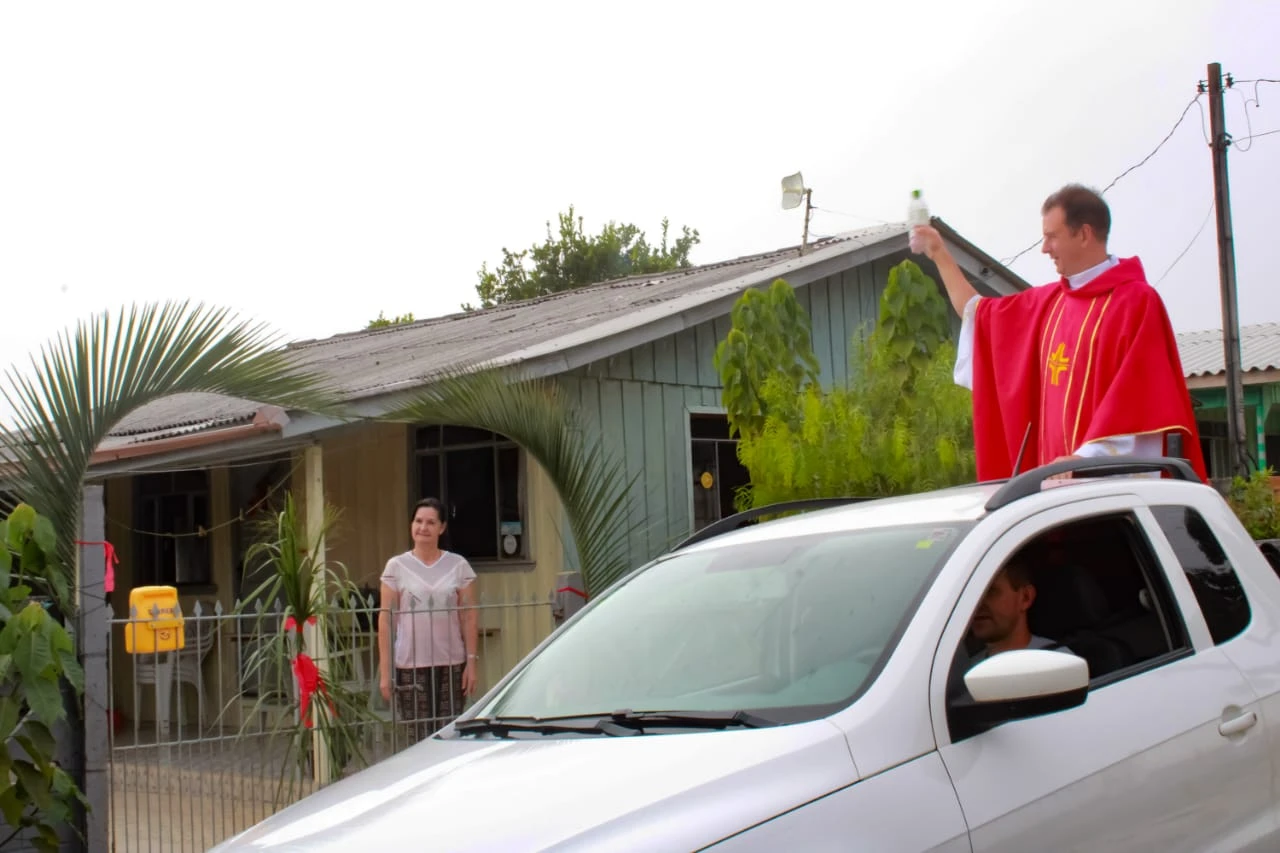 Em Fernandes Pinheiro, padre Leonel Stanski foi para as ruas às 8h30, percorrendo todo o entorno da matriz São Sebastião, até às 10 horas, e, em seguida, passou pelas ruas da região da Capela Nossa Senhora dos Remédios, na comunidade do Angaí. O sacerdote abençoava os ramos e as pessoas. “O padre fez a bênção nos horários que seriam as missas e foi onde o asfalto facilitava o deslocamento: só na matriz e o Angaí. Muita gente enfeitou as casas e os portões”, informou a secretária paroquial Rita Calixto. A Paróquia São Sebastião tem 16 capelas.