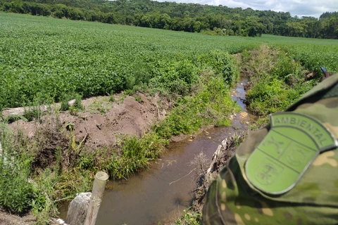 A fiscalização foi iniciada após solicitação do setor de geoprocessamento da corporação, que identificou possíveis danos ambientais por meio de imagens de satélite. No local, os policiais constataram três infrações ambientais distintas.