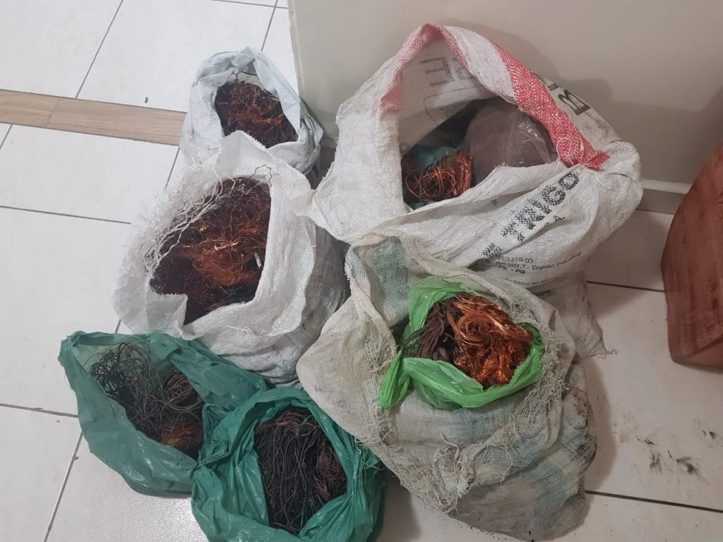 A terceira prisão, realizada no bairro Santa Cecília, foi de um rapaz de 23 anos de idade, o qual foi preso em flagrante pela prática do crime de receptação, uma vez que durante o cumprimento do devido mandado de busca e apreensão foi localizada no interior da sua residência mais de 40 quilos de fios de cobre de origem desconhecida.