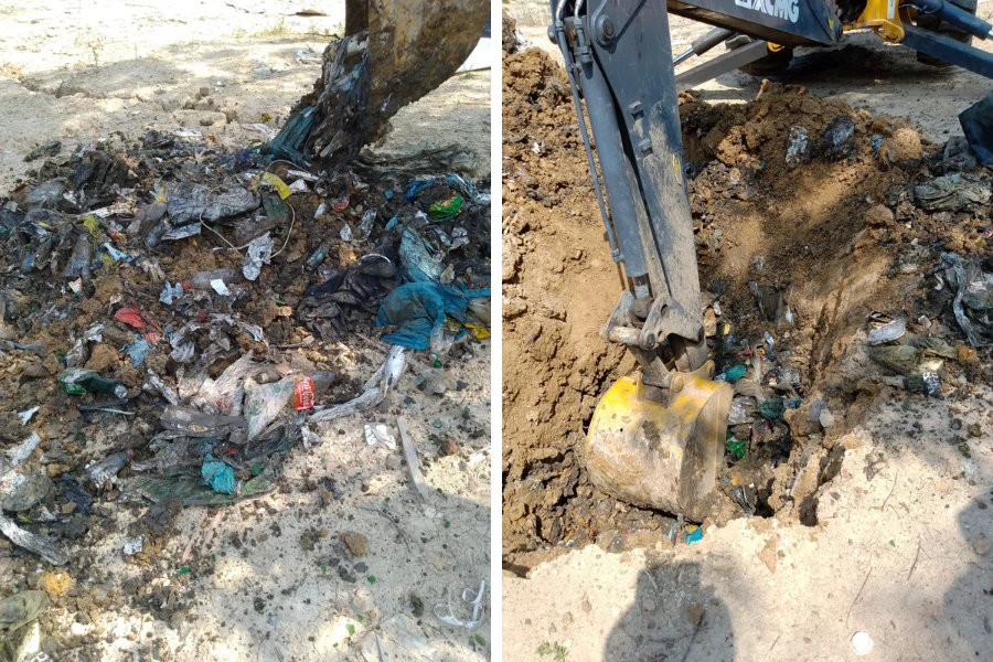 Segundo a denúncia, este material não estaria sendo encaminhado para Ponta Grossa, e sim despejado em uma vala dentro de um terreno particular alugado pela empresa para armazenamento de paletes.