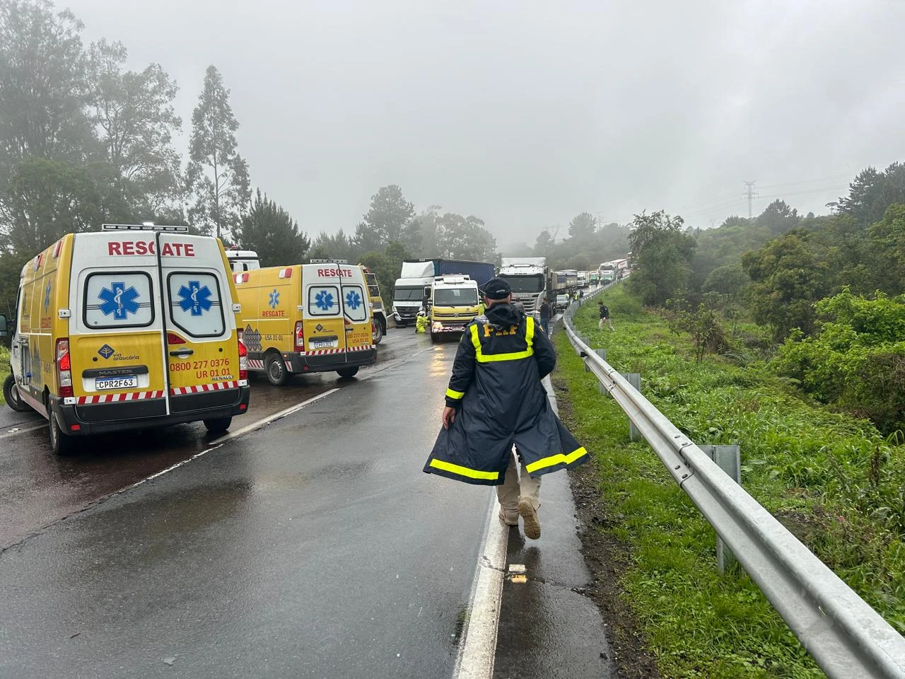 Matéria atualizada: Veja as fotos e atualizações do engavetamento na BR-277 entre Curitiba e Ponta Grossa; rodovia está bloqueada