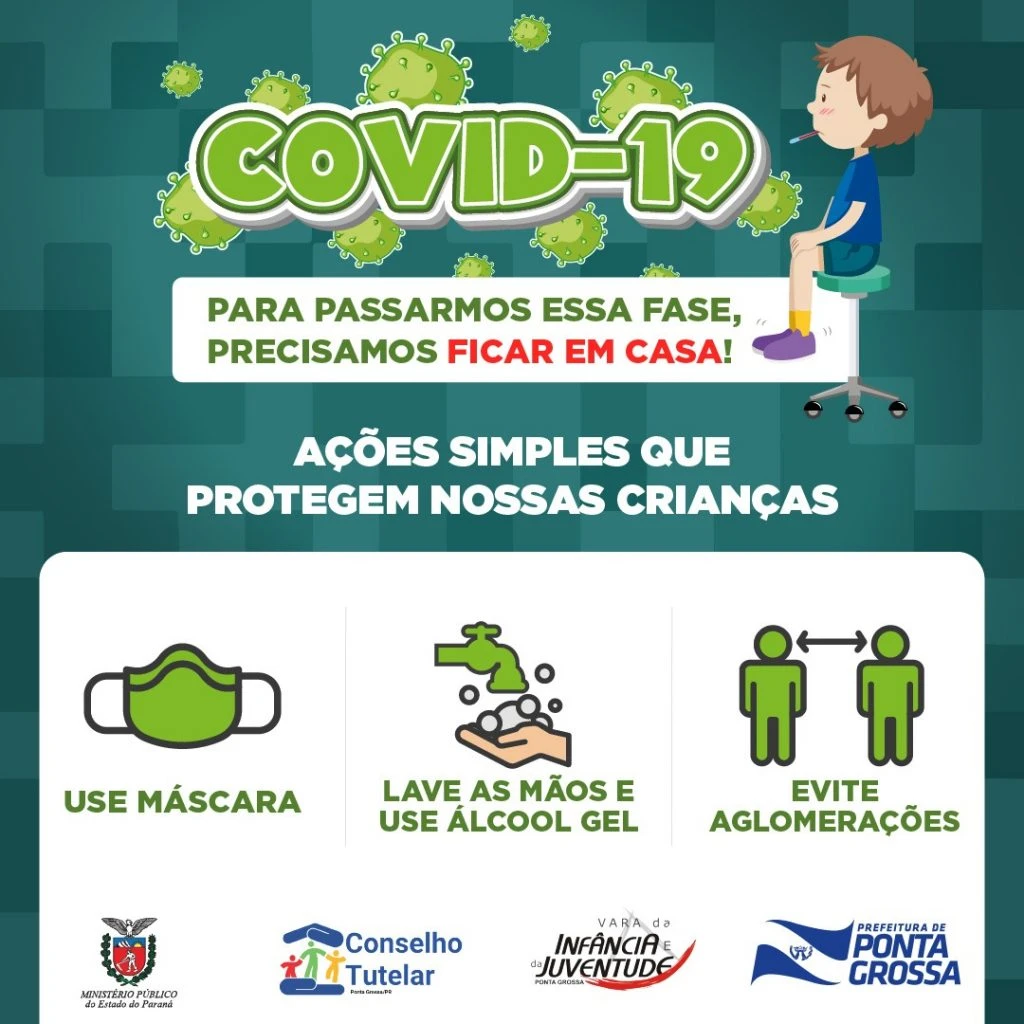 A Prefeitura Municipal de Ponta Grossa em parceria com o Conselho Tutelar, Ministério Público do Estado do Paraná e a Vara da Infância e da Juventude de Ponta Grossa, reforça as medidas e cuidados que devem ser aplicados, principalmente com as crianças e adolescentes, nesta pandemia da COVID-19.