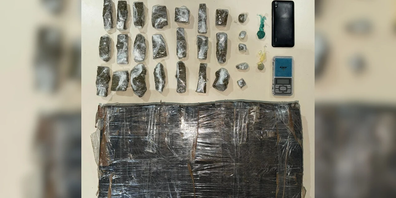 No interior do imóvel, um homem tentou fugir ao perceber a presença da PM, mas acabou detido. Com ele, os policiais encontraram cerca de 9,969 kg de maconha visivelmente exposta, parte dividida em tabletes e parte fracionada e pronta para comercialização. Os policiais também apreenderam um aparelho celular e uma balança de precisão.