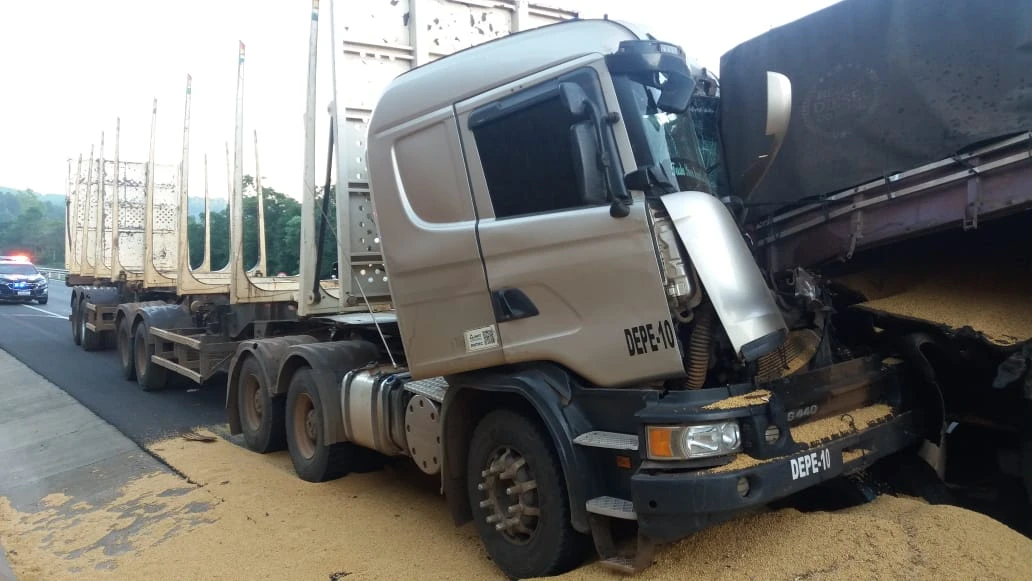 Por volta das 4h50 da madrugada desta sexta-feira, 12, a Polícia Rodoviária Federal atendeu uma colisão traseira envolvendo dois caminhões, onde resultou em um motorista ferido com lesões graves. Um caminhão Scania, bitrem com placas de Astorga, carregado de soja, seguia sentido Ponta Grossa em um trecho de aclive e foi atingido na traseira por outro caminhão, que estava vazio, com placas de Telêmaco Borba, que vinha atrás. O acidente aconteceu no km 405,4 da BR376 em Tibagi.