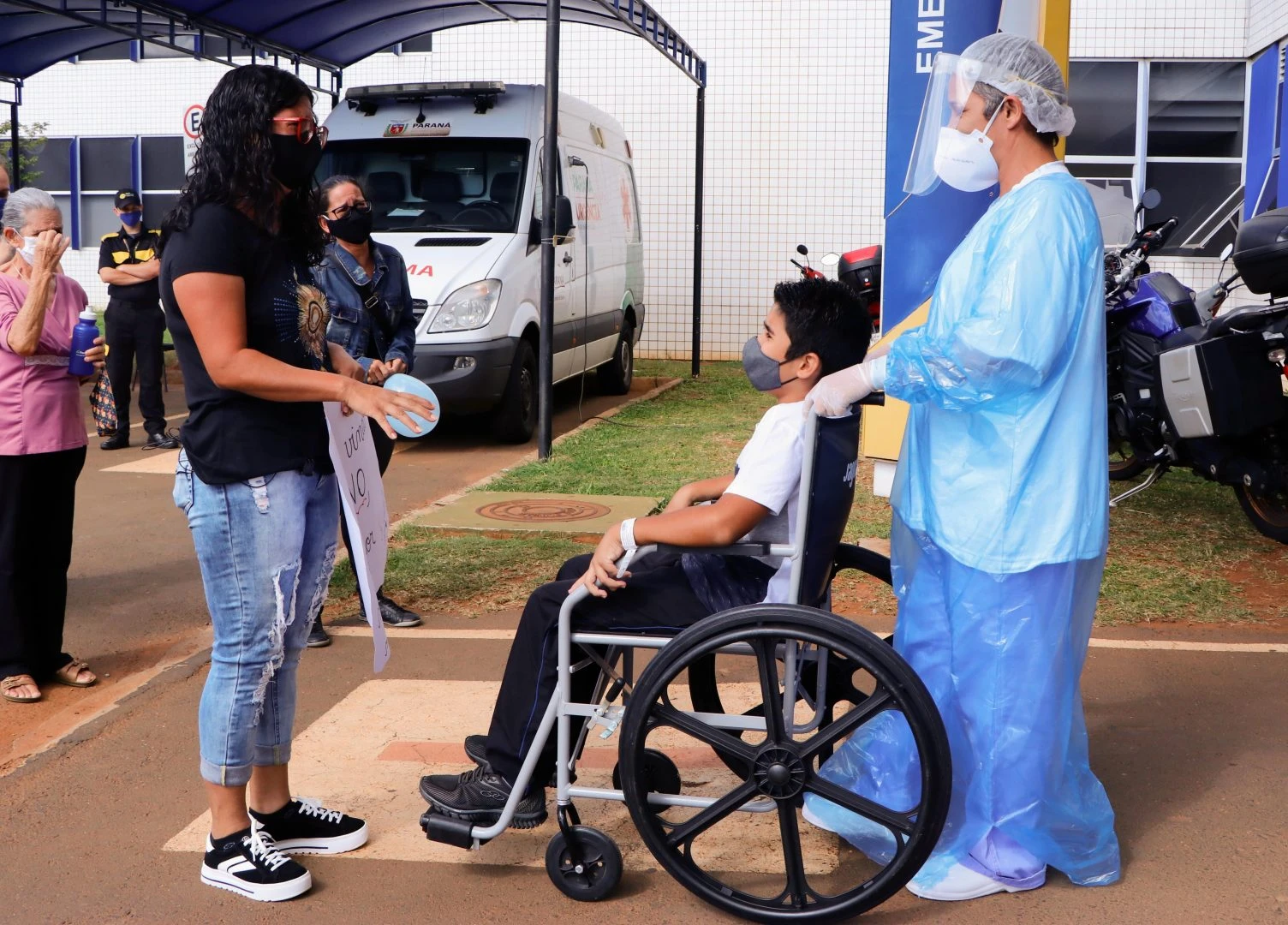 Ivete estava na porta do Pronto Atendimento. “Daqui a pouco, vou buscar eu mesma”. Era o dia da alta do seu filho único, e a espera foi recompensada. Após treze dias internado, Breno Rodrigues recebeu alta na tarde desta quinta-feira (08). Com apenas 12 anos, ele é o paciente mais jovem a ser internado com Covid-19 no Hospital da Universidade Estadual de Ponta Grossa (HU-UEPG). Foram 13 dias de internamento, 11 na Unidade de Terapia Intensiva (UTI). Destes, Breno passou sete dias intubado.
