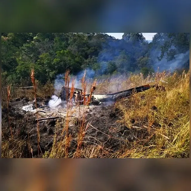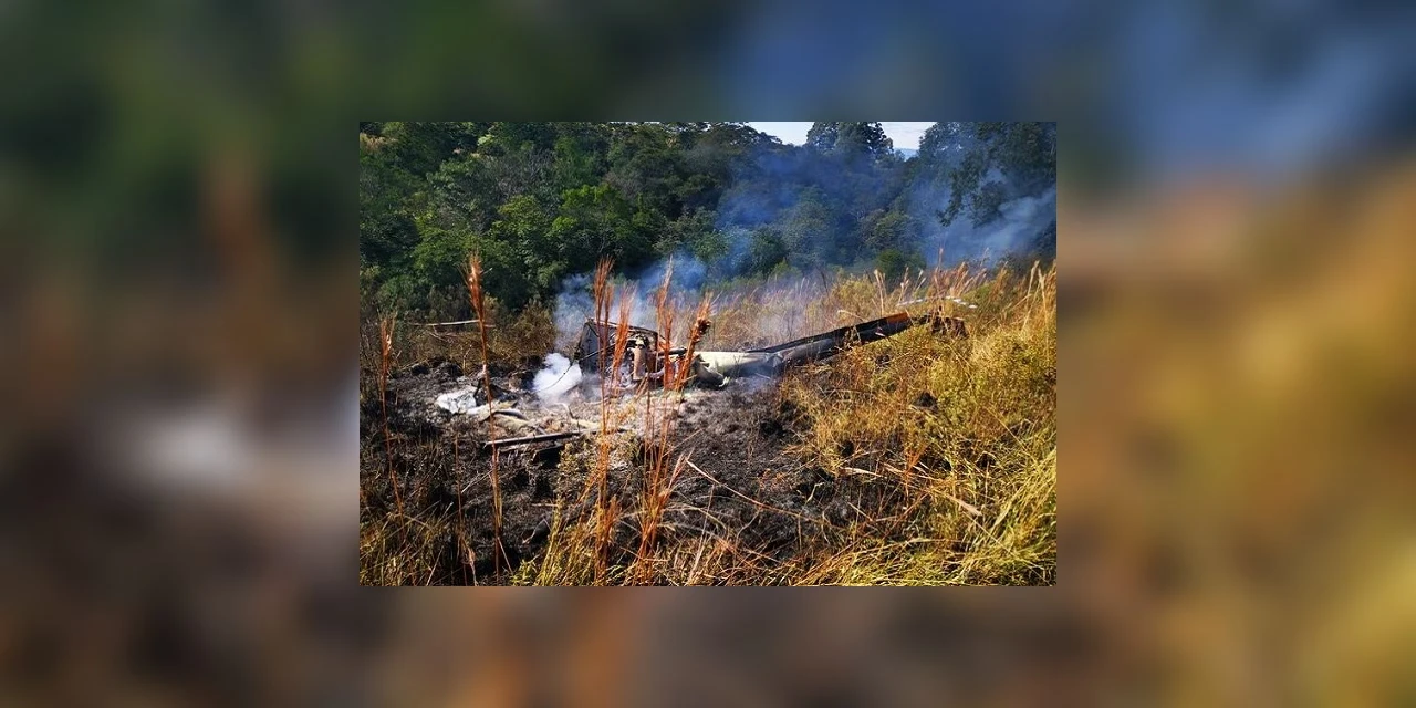 Após a queda o helicóptero pegou fogo. A polícia investiga para saber se o incêndio foi provocado.
