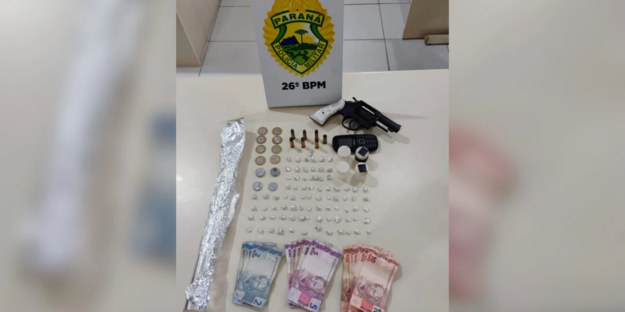 A Polícia Militar do Paraná (PMPR), por meio de uma equipe do 26º Batalhão (26º BPM), prendeu um homem por tráfico de drogas e posse irregular de arma de fogo no bairro Vila Esperança, em Telêmaco Borba. A ação ocorreu durante a última quarta-feira (25).