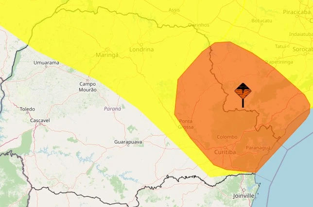 O Instituto Nacional de Meteorologia (Inmet) emitiu um alerta de perigo potencial de chuvas intensas que podem atingir 59 municípios paranaenses entre esta terça e quarta-feira (12 e 13).
