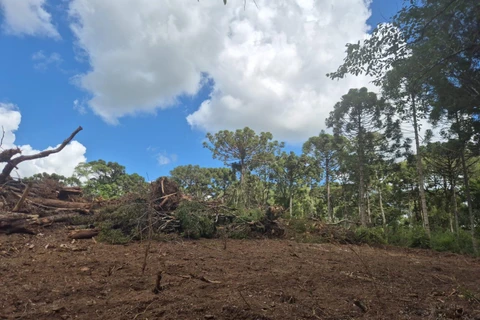 Conforme divulgou a PM, na primeira área vistoriada, os agentes constataram o corte ilegal de 210 árvores de Pinheiro-do-Paraná (Araucaria angustifolia), espécie ameaçada de extinção. As árvores estavam organizadas em leiras, o que indicou a prática de exploração irregular, resultando em infração ambiental no valor de R$ 102 mil contra o responsável pela área.