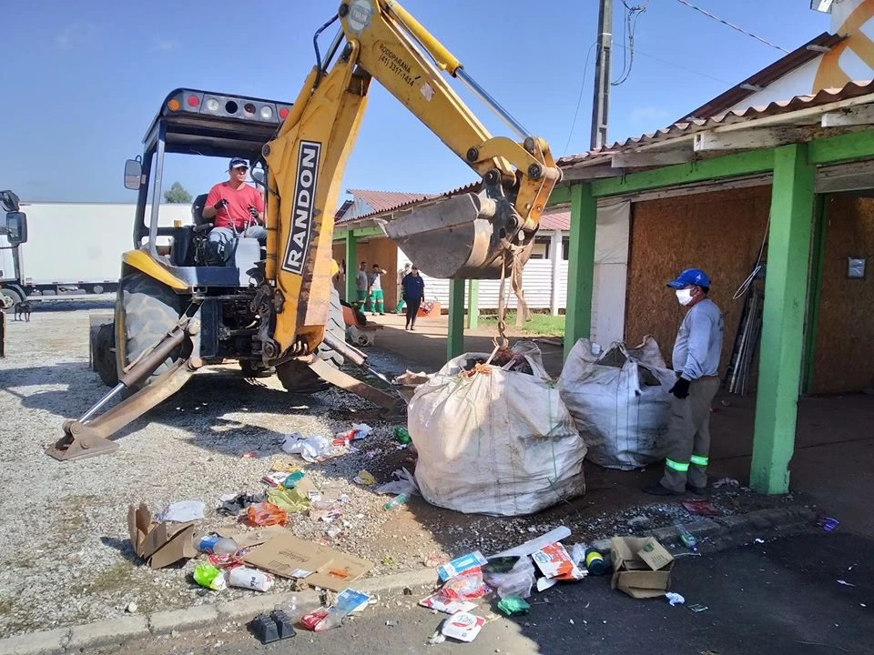 Equipes da Secretaria Municipal de Obras, Serviços Públicos e Meio Ambiente recolheram material reciclável estocado em barracão no parque de Exposições Dario Macedo. Todo o material coletado pelo caminhão da Coleta Seletiva passou por quarentena e após o processo de descontaminação em prevenção a Covid-19, foi encaminhado para a Associação de Catadores de Materiais Recicláveis de Castro (ACMRC).