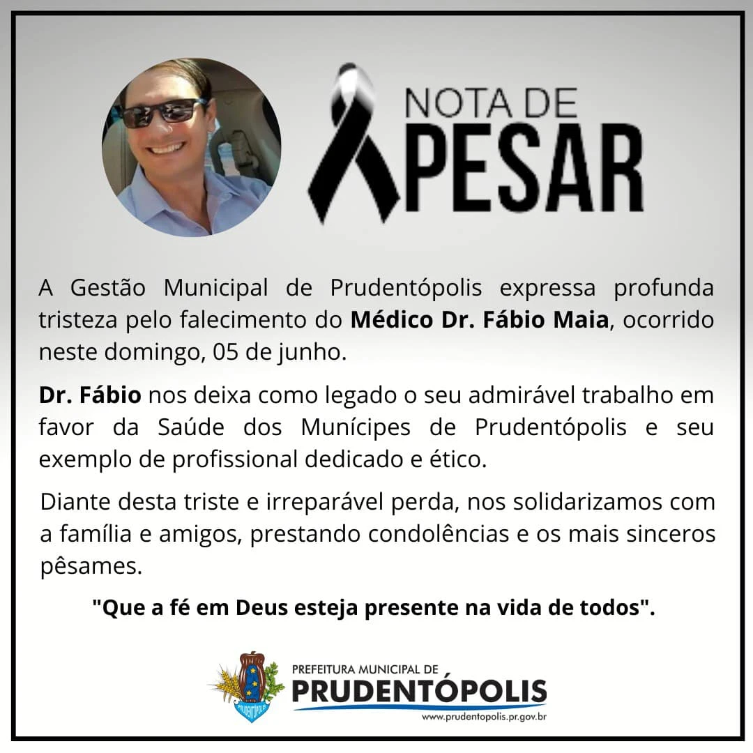 Nas redes sociais, a Prefeitura de Prudentópolis lamentou a morte do médico.