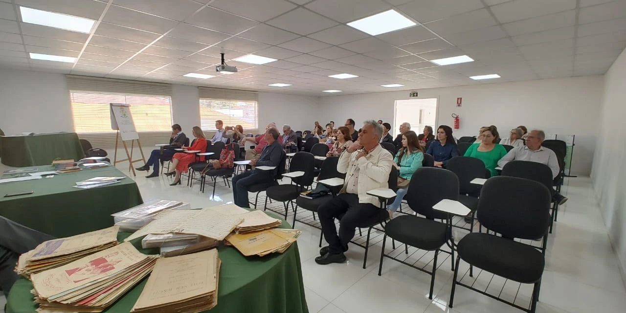 Na sequência da sessão itinerante, o acadêmico Douglas Passoni de Oliveira, palmeirense ocupante da Cadeira 8, apresentou sua pesquisa sobre o resgate e catalogação do