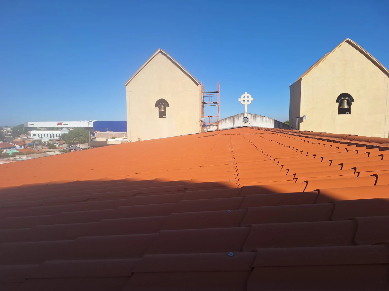 A obra entra em uma fase importante. A paróquia está concluindo a nova cobertura da igreja, com a finalização das telhas, calhas e rufos, garantindo mais segurança e proteção para o templo. Paralelamente, a parte elétrica já foi iniciada, preparando toda a estrutura interna para receber novamente os fiéis com mais conforto. O próximo passo será justamente este: retomar as celebrações dentro da matriz, que por um tempo precisaram acontecer em espaços provisórios.