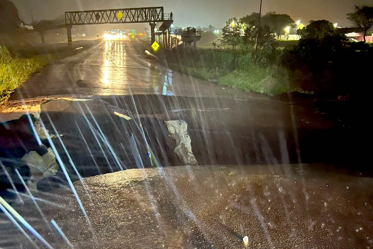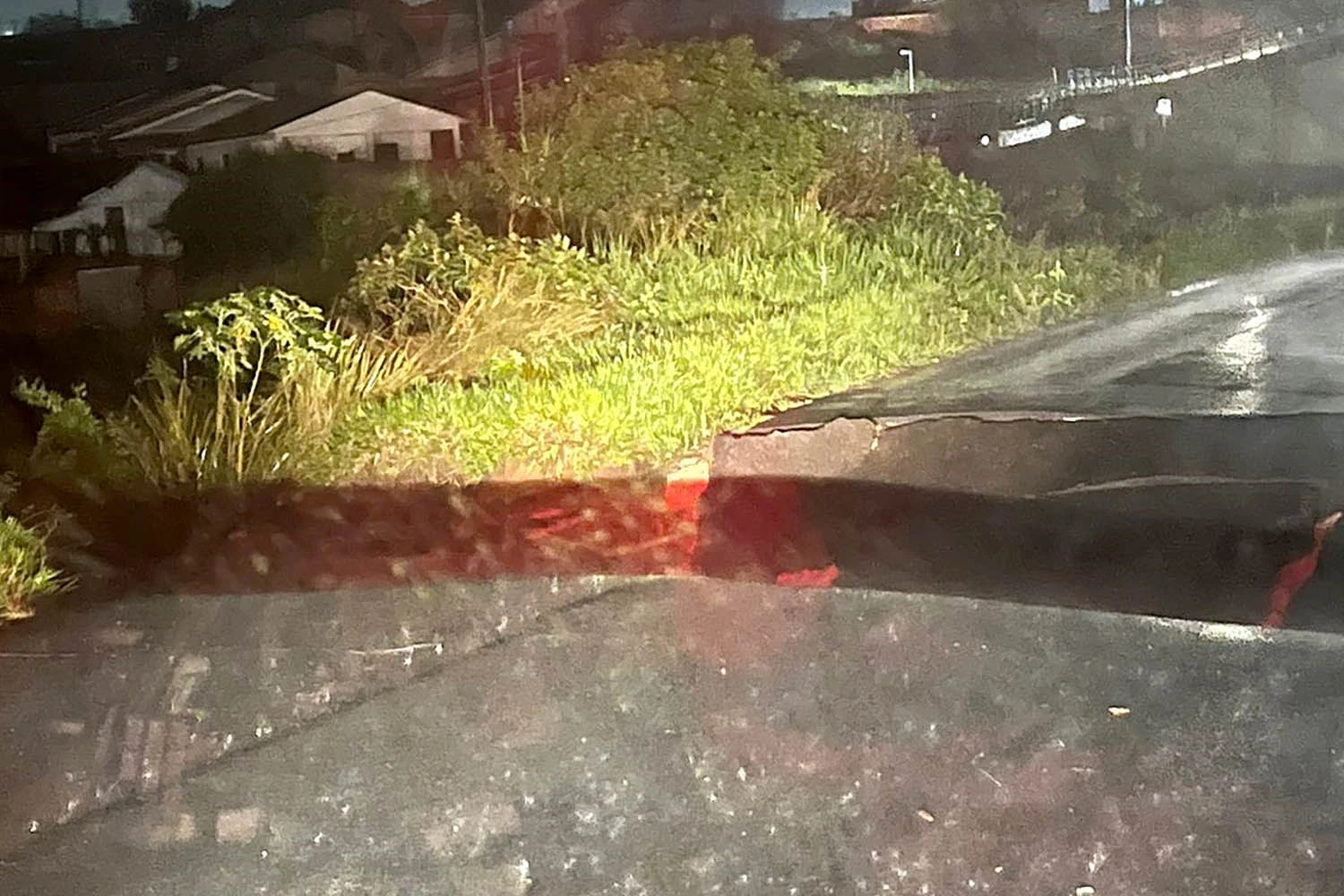 Como ponto de referência, o pavimento da PR-151 cedeu a cerca de 100 metros de uma passarela para pedestres, que não parece ter sido afetada.